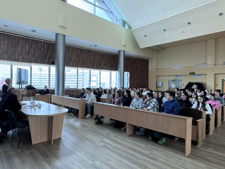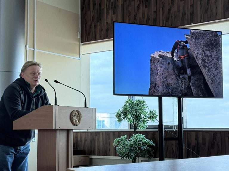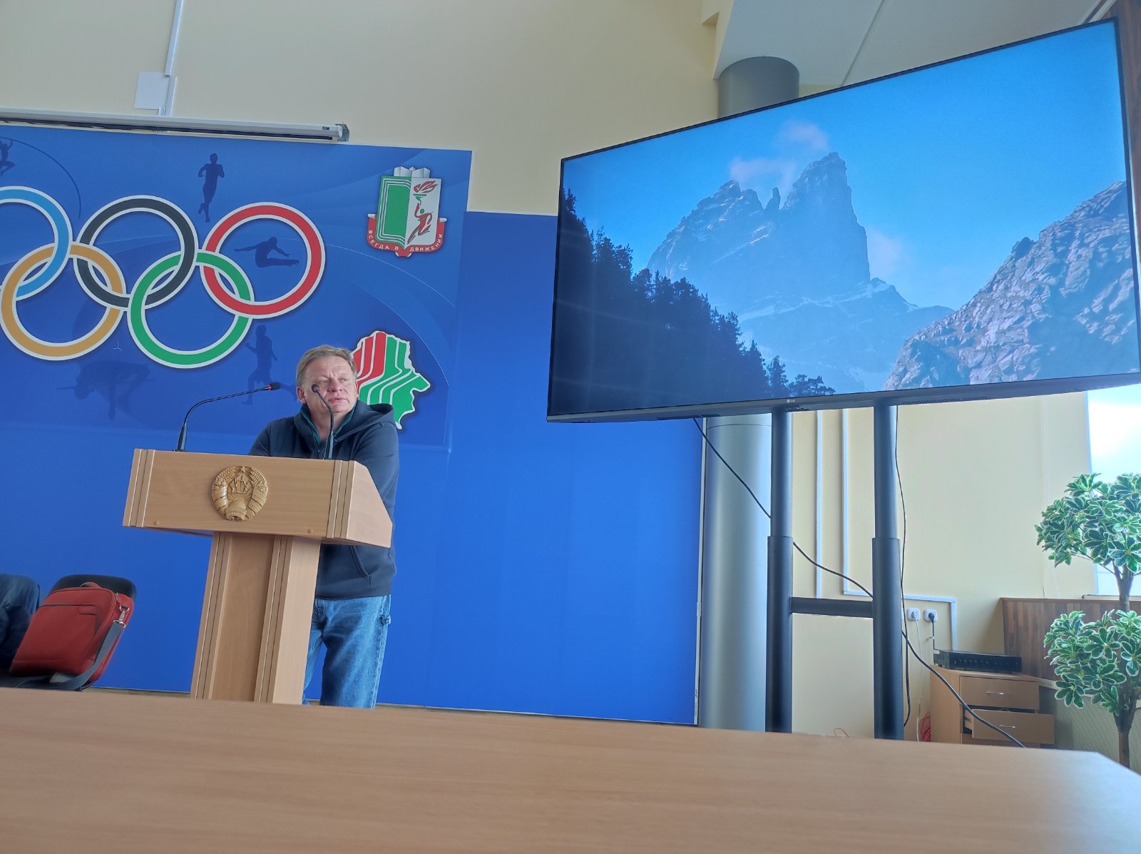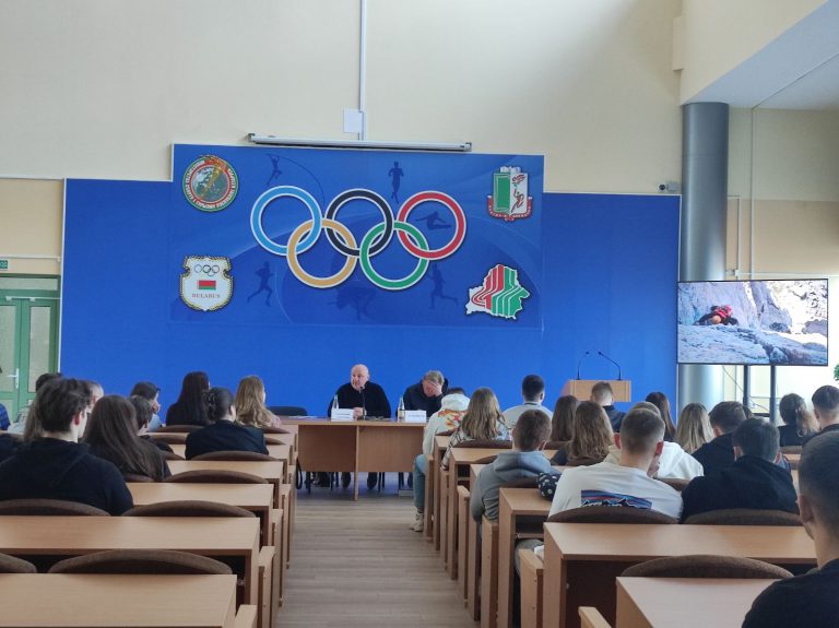 Во время встречи, председатель федерации поведал студентам об интересных исторических фактах зарождения белорусского альпинизма и скалолазания, путях развития олимпийского вида спорта и познакомил со своей новой книгой «Следы», описывающей нелегкие испытания белорусских высотников на грани неба и земли.