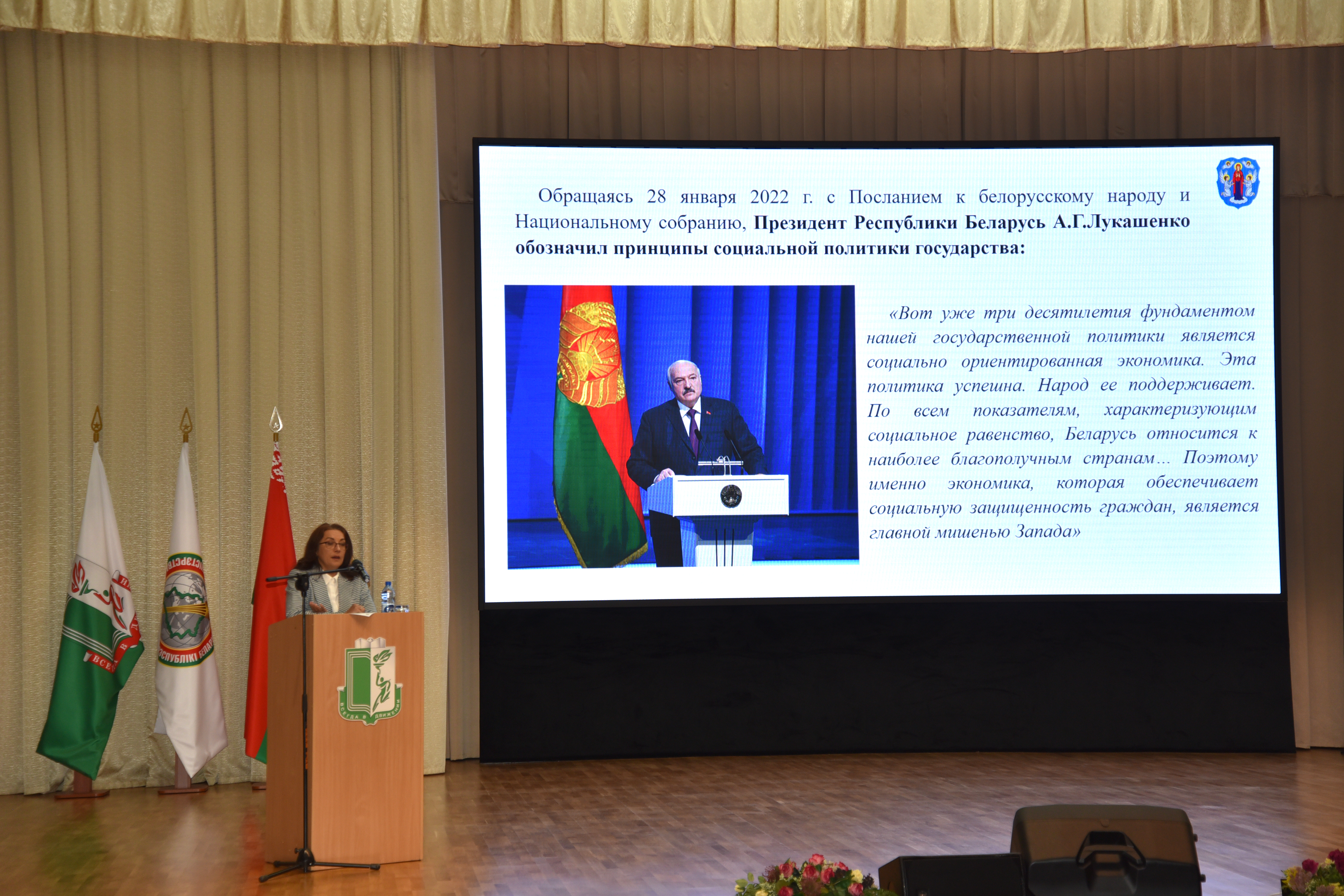 23 ноября в актовом зале университета прошел единый день информирования на тему: «Экономическая безопасность — ключевое условие устойчивого развития белорусского государства». На мероприятии присутствовали руководители, профессорско-преподавательский состав и сотрудники университета.