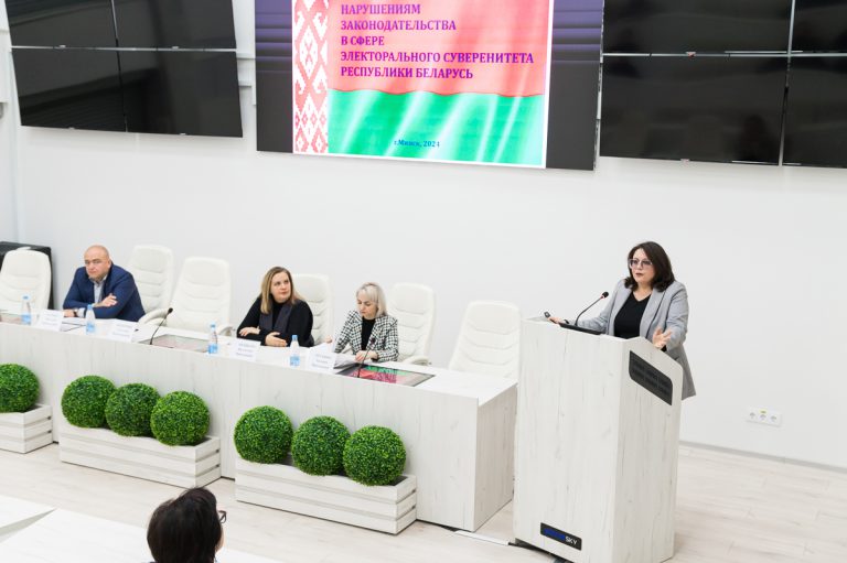 Гости обстоятельно ознакомили коллектив Института с вопросами противодействия нарушениям законодательства в сфере электорального суверенитета Республики Беларусь и ответили на вопросы присутствующих