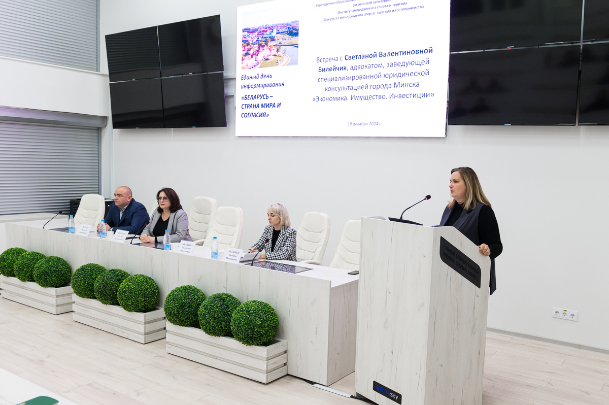 19 декабря на факультете менеджмента спорта, туризма и гостеприимства Института менеджмента спорта и туризма прошел Единый день информирования на тему «Беларусь – страна мира и согласия».