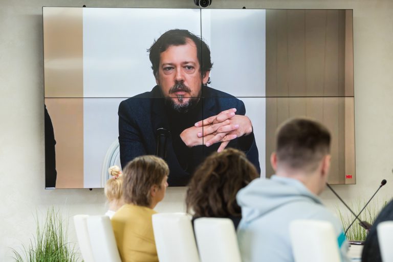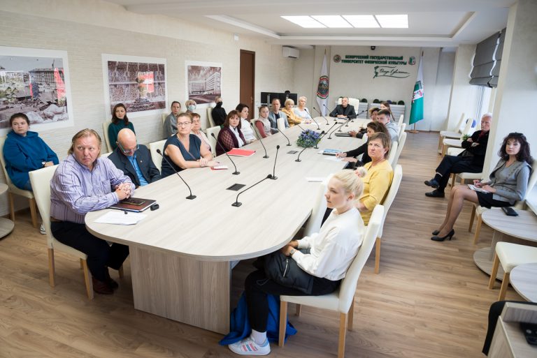Преподаватели и сотрудники университета присутствовали на онлайн-трансляции мероприятия. Модератором информационного часа выступил первый проректор университета, кандидат исторических наук, доцент, заслуженный работник образования Республики Беларусь Сергей Валентинович Шаврук.