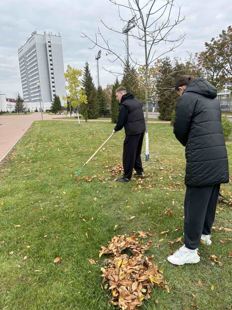 С наступлением осени и обильного листопада традиционно началась работа по наведению порядка на территориях Белорусского государственного университета физической культуры.
