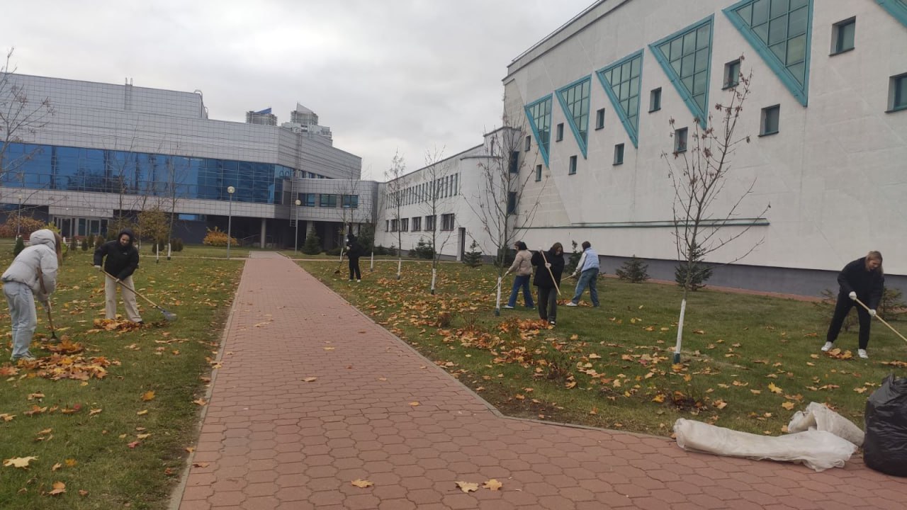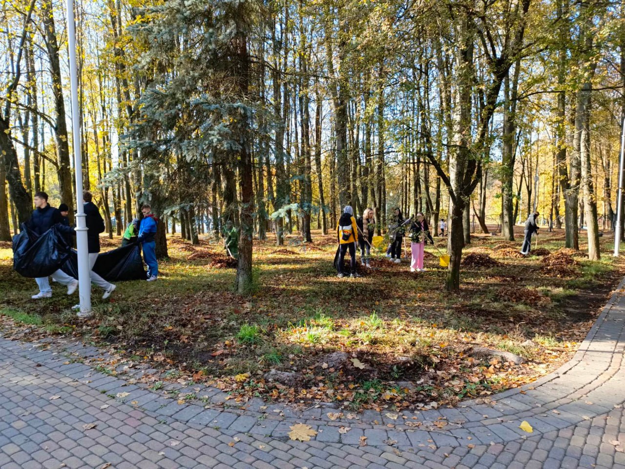 На протяжении недели, с 17 по 24 октября, студенты и преподаватели спортивно-педагогического факультета массовых видов спорта трудились на прилегающей к университету территории и в столичном парке Победы. Во вторник представители университета приехали на место массового захоронения узников концлагеря «Дрозды», где убрали территорию вокруг памятника от листьев, очистили монумент и собрали мусор.
