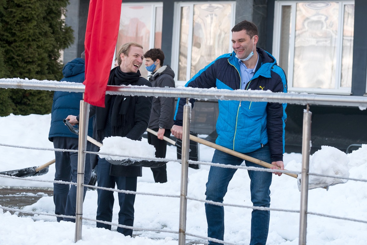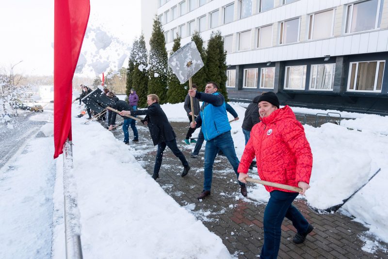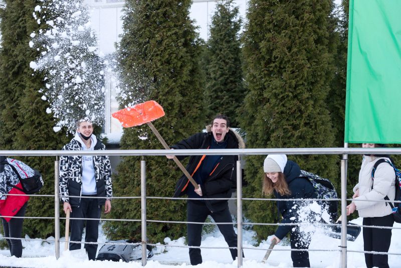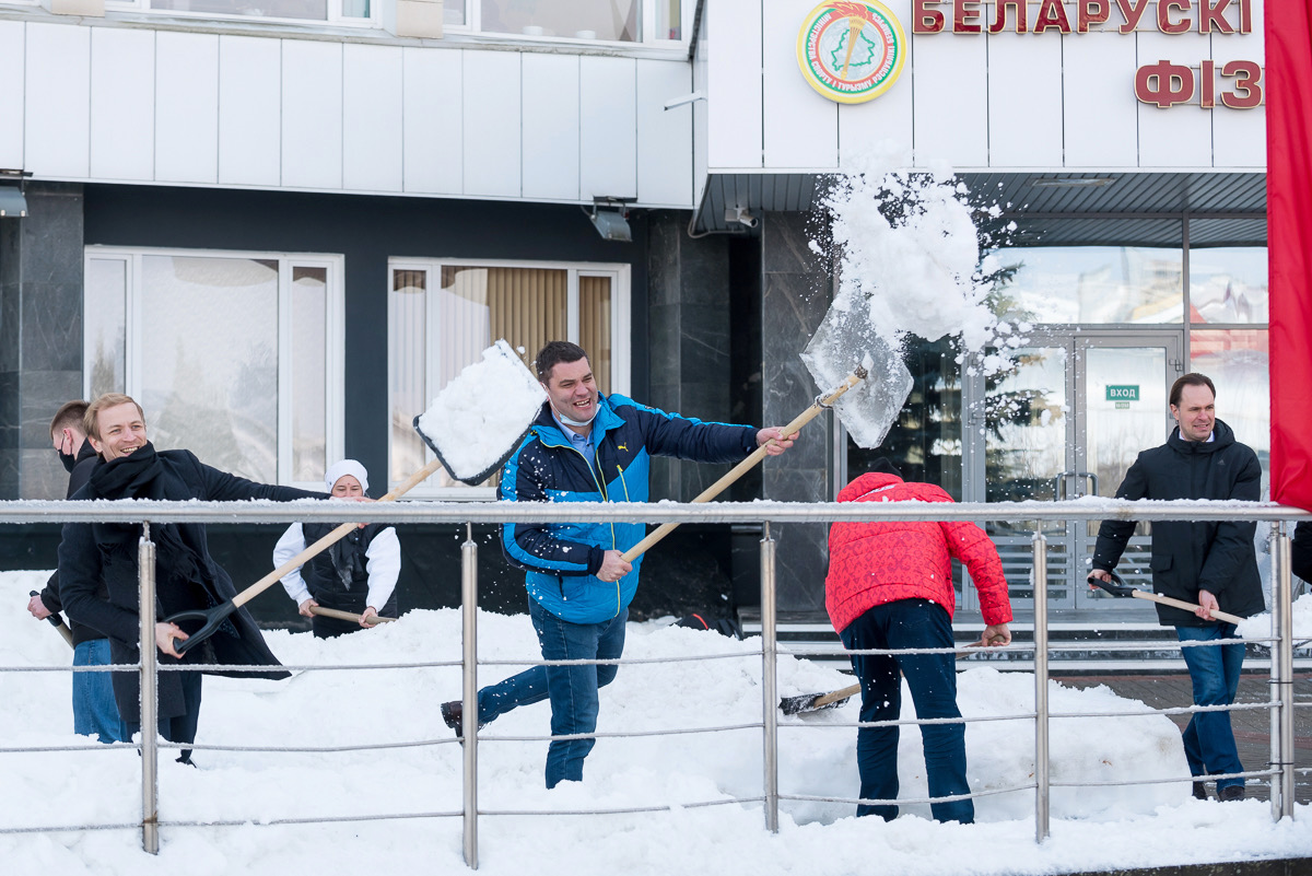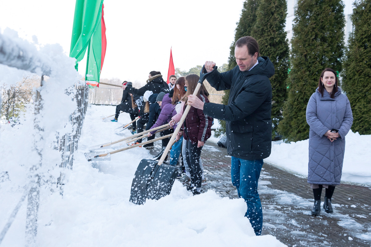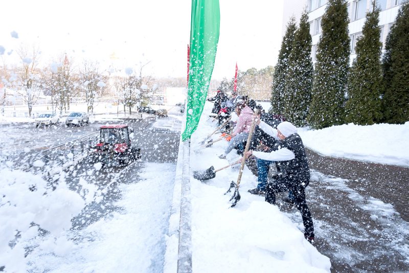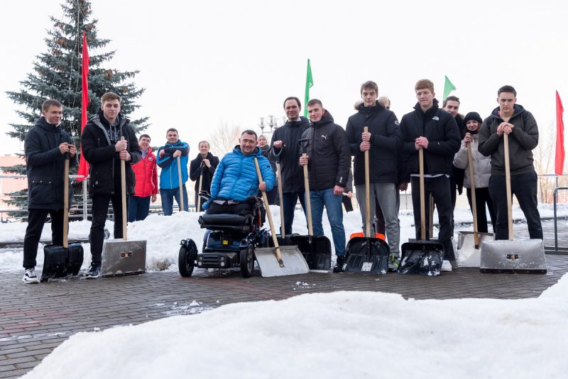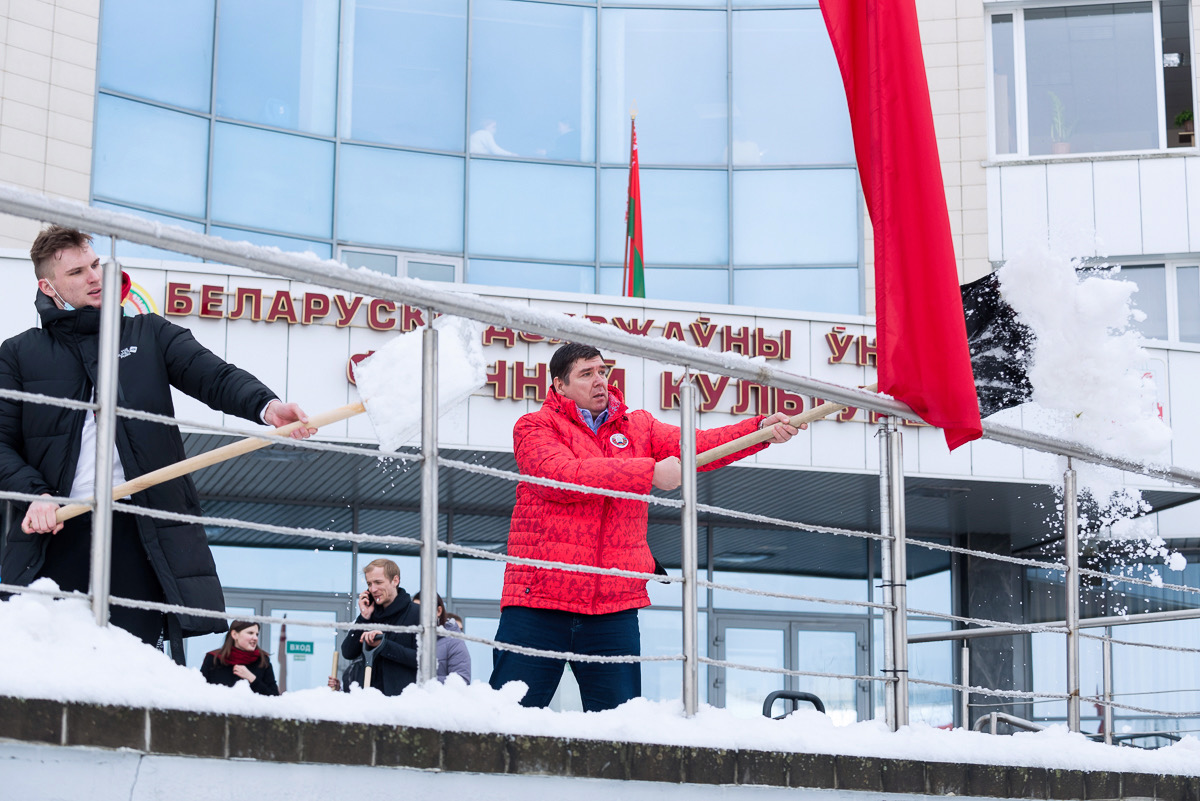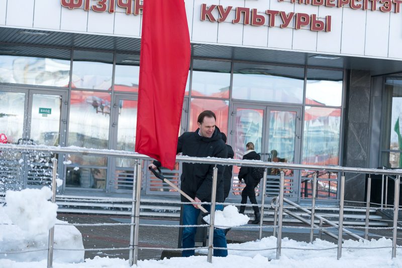 Алексей Талай талисман БГУФК принял участие в уборке территории университета.