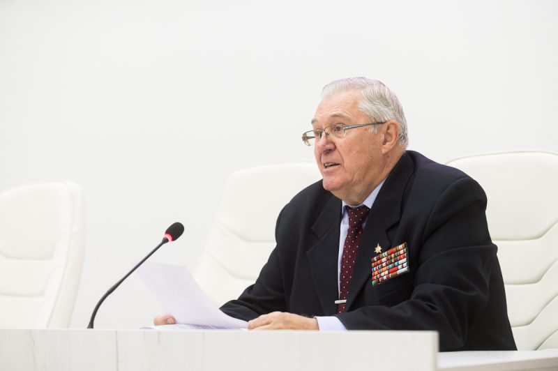 Накануне значимого праздника в Зале совета БГУФК состоялась встреча студентов с председателем Центральной районной организации ветеранов г. Минска Белорусского общественного объединения ветеранов Георгием Петровичем Атамановым.