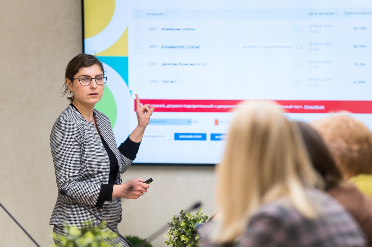 На практическом примере сформулированной темы, были определены аспекты составления плана работы, цели, объекта, предмета и задач, а также рассмотрены иные структурные элементы научного исследования. Также во время встречи были затронуты вопросы оформления и проверки работ в системе «Антиплагиат».