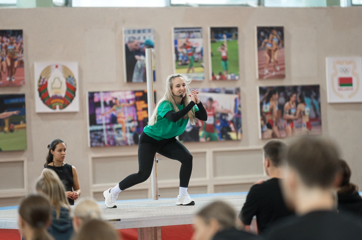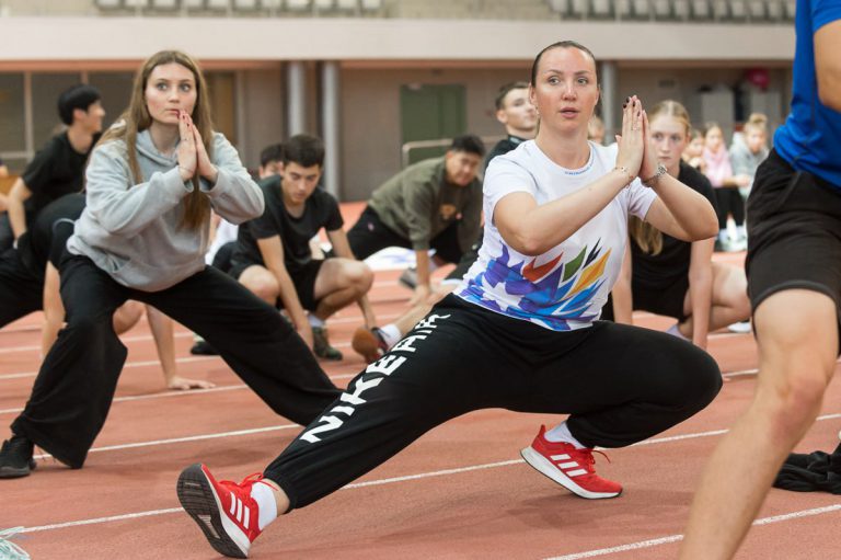 Наталья Антоновна Квятковская, заведующий кафедрой технологий фитнеса, представила потрясающих фитнес-инструкторов — наших студенток из группы 0401: Валович Валерию, Шафранскую Юлию и Николаеву Александру. Она отметила важность выполнения каждого упражнения в собственном ритме и пожелала всем наслаждаться процессом.