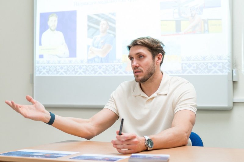 На спортивно-педагогическом факультете массовых видов спорта состоялась встреча с Заслуженным мастером спорта Республики Беларусь по плаванию, участником Игр ХХХIII Олимпиады в Париже, чемпионом мира, двукратным чемпионом Европы на короткой воде, рекордсменом мира на дистанции 100м брассом Ильей Шимановичем.