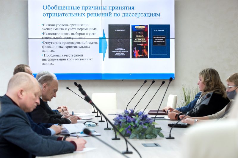 Добрего К.В. отметил общие тенденции национальной системы аттестации научных кадров и представил статистику по результатам защит диссертационных работ, прошедших экспертизу в ВАК за 2020 год. Попова О. С. рассказала об основных параметрах оценки диссертации со стороны экспертного совета ВАК, а также назвала обобщенные причины принятия отрицательных решений по диссертациям. Фурса И. А. подробно остановилась на особенностях представления диссертации к предварительной экспертизе, экспертизе диссертации в совете по защите диссертаций и в ВАК и представила весь спектр нормативных правовых актов, отражающих данные требования. Особое внимание Ирина Анатольевна уделила вопросу оценки оригинальности текста диссертации.