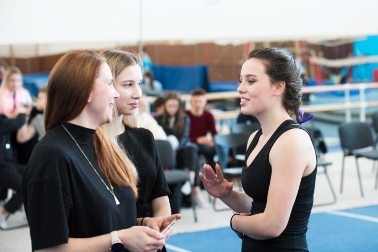 3 место – выпускницы 2023 года, чемпионки Европы по прыжкам на батуте П.Манкевич и В.Богомолова (синхронные прыжки на батуте).