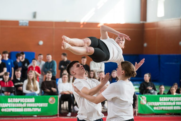 19 апреля за награды боролись студенты 1 и 2 курсов. Первокурсники пробовали свои силы в спортивной акробатике.