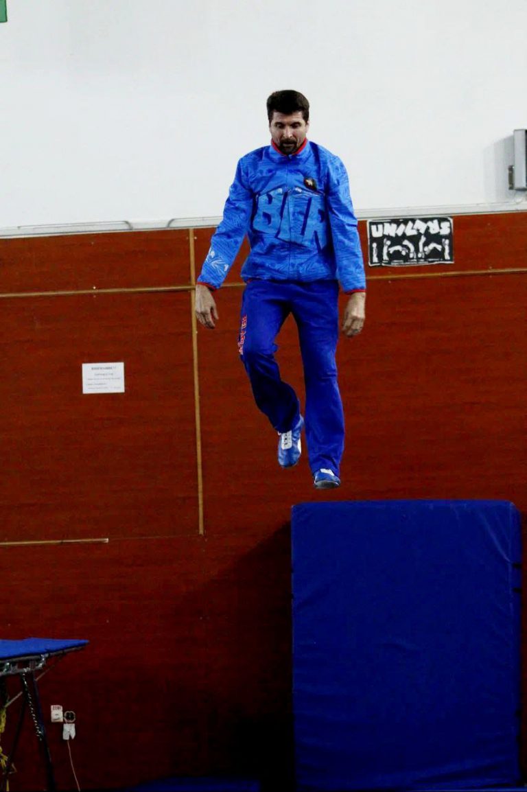 2 место – старший преподаватель кафедры спортивной борьбы В.В.Манинов (прыжки на батуте);
