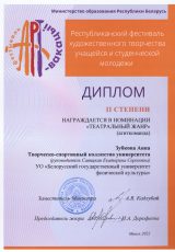 Подведены итоги республиканского фестиваля художественного творчества учащейся и студенческой молодежи «АРТ-вакацыі — 2022». Дипломами победителей и призерами в различных номинациях награжден коллектив и студенты университета.