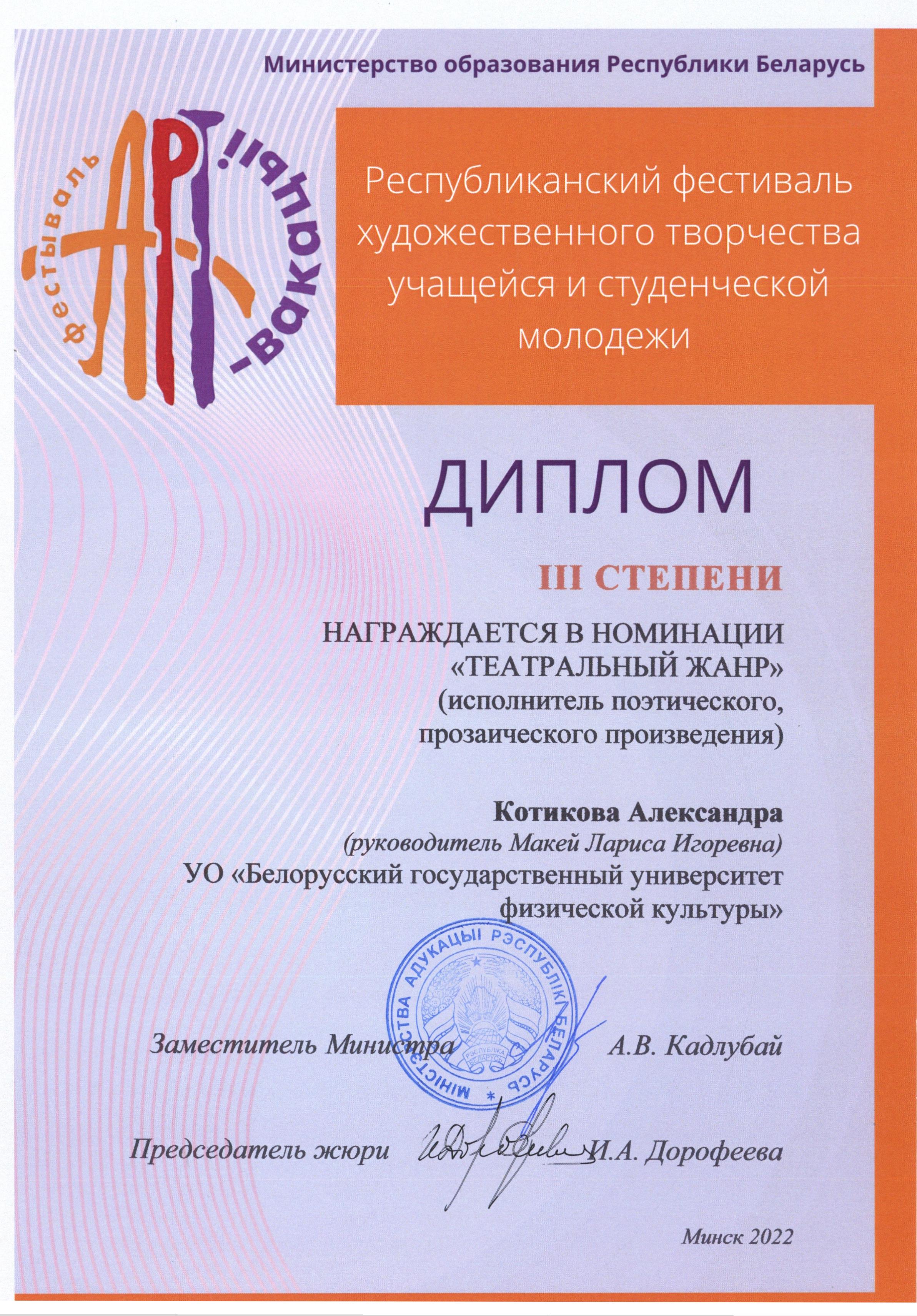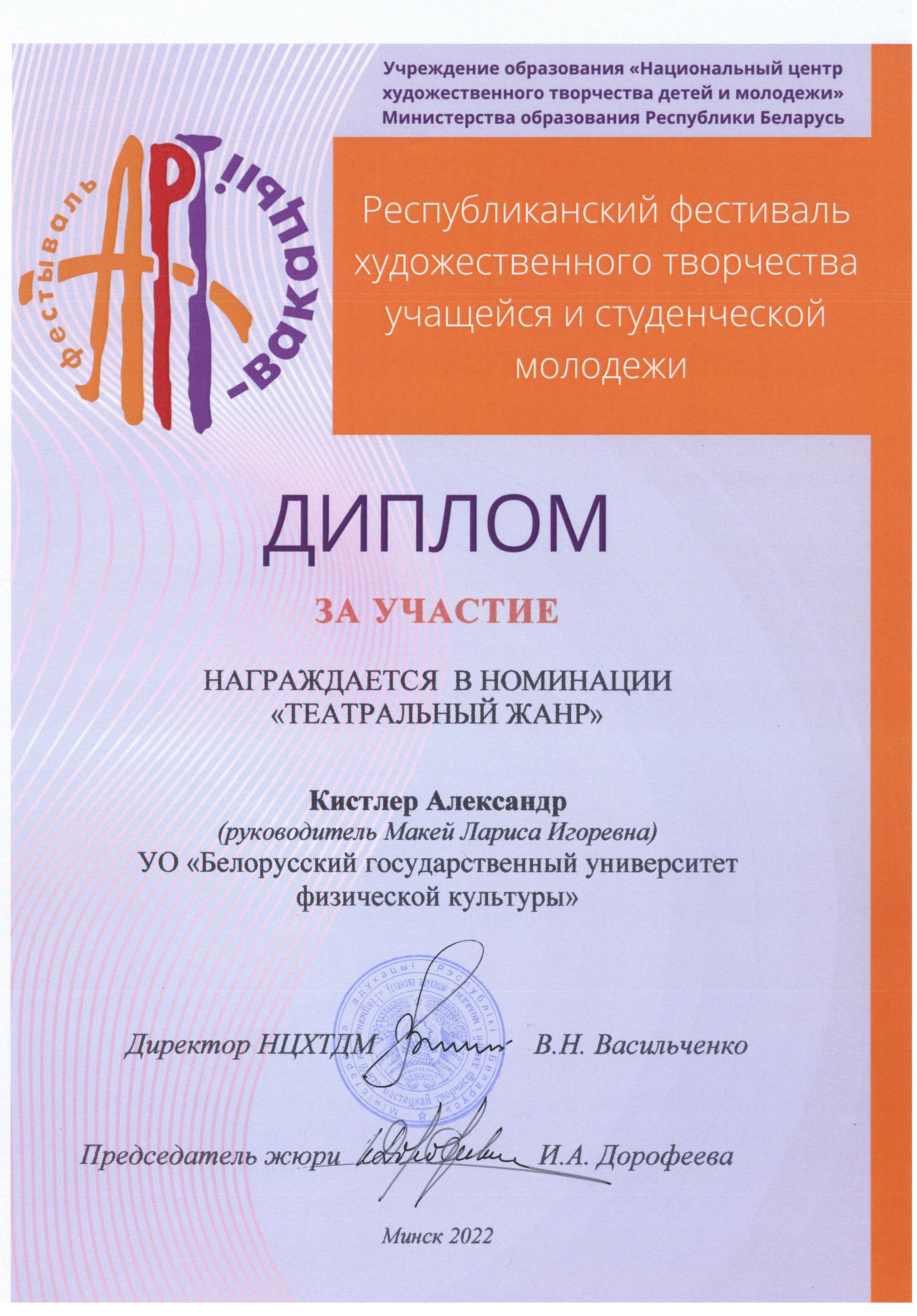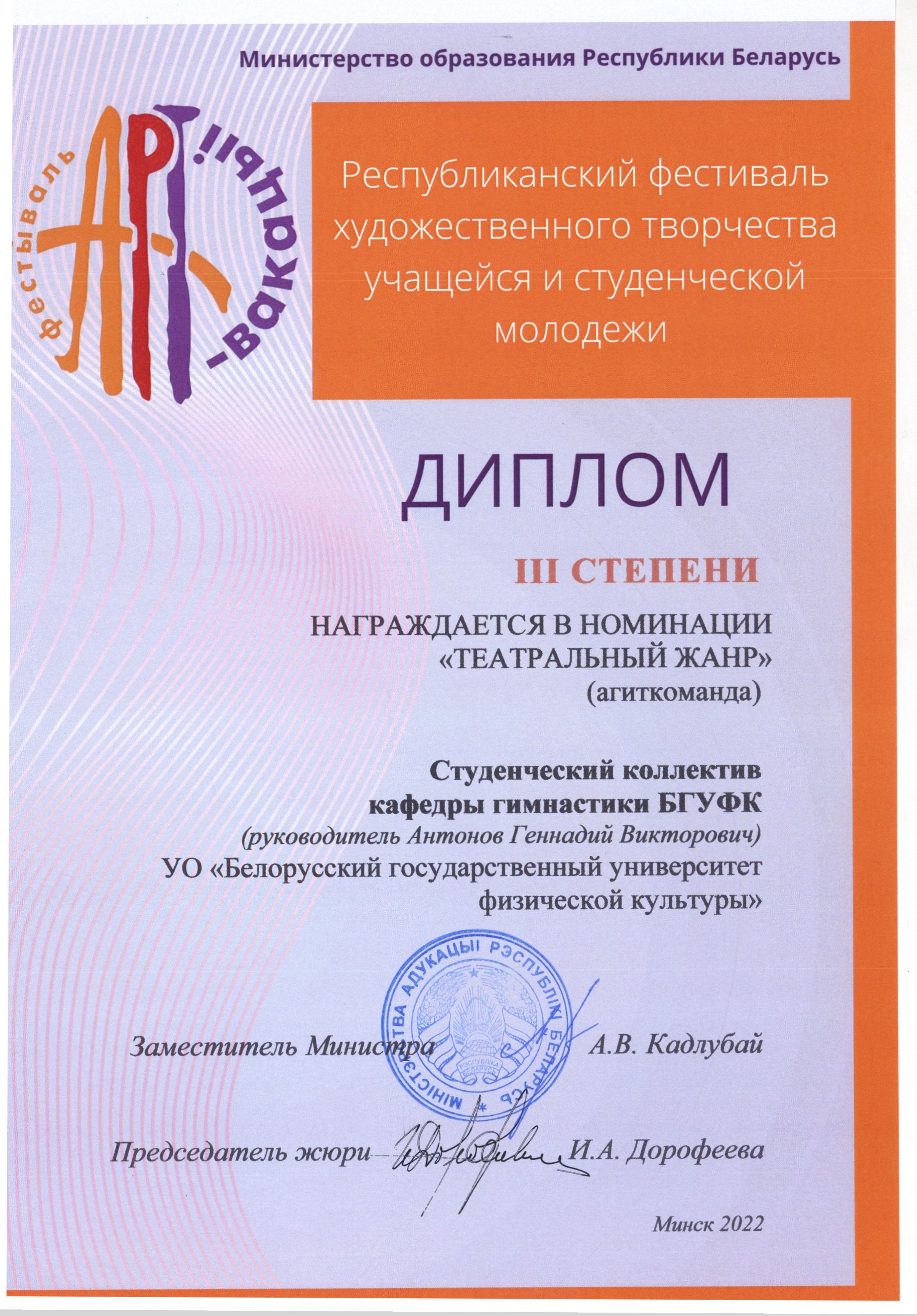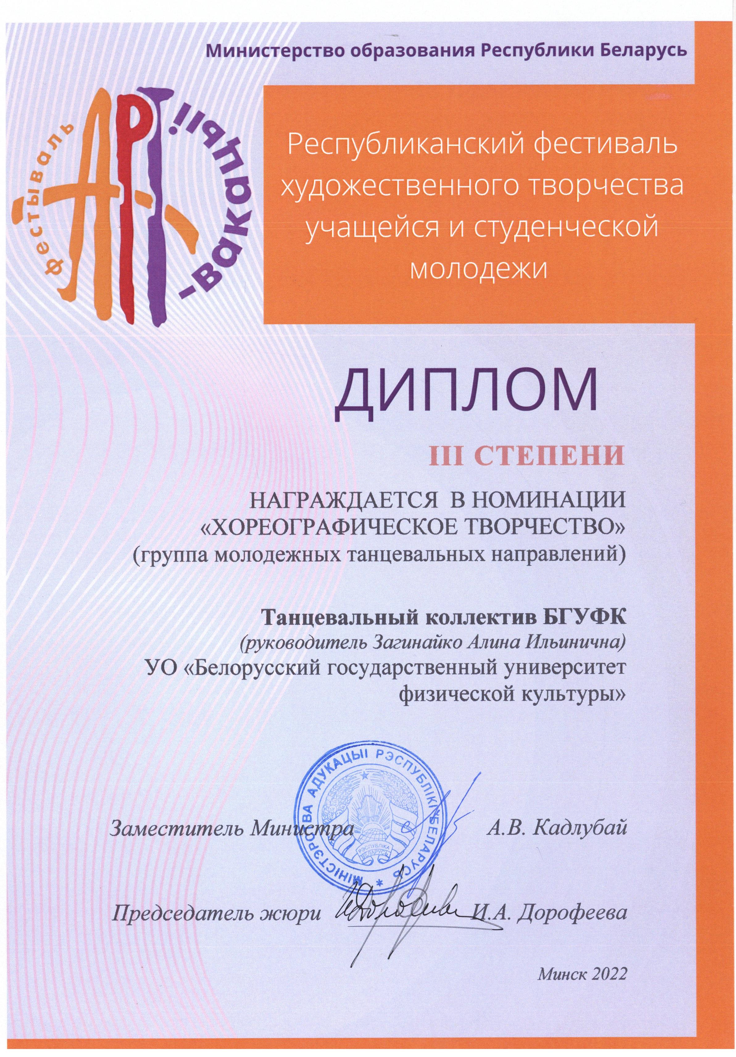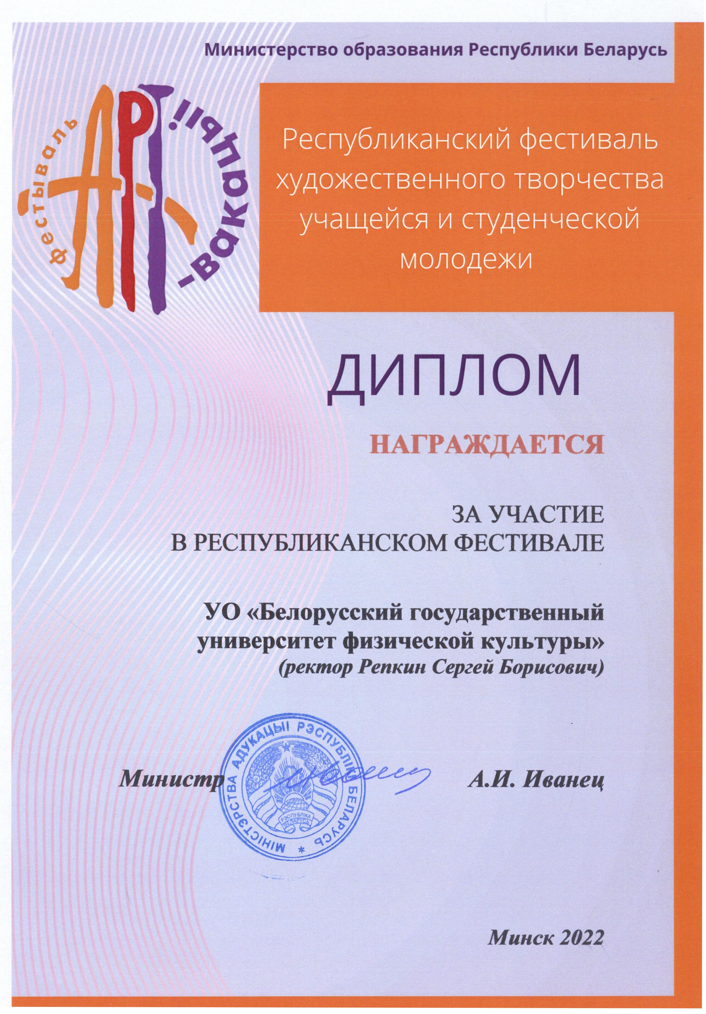 Подведены итоги республиканского фестиваля художественного творчества учащейся и студенческой молодежи «АРТ-вакацыі — 2022». Дипломами победителей и призерами в различных номинациях награжден коллектив и студенты университета.