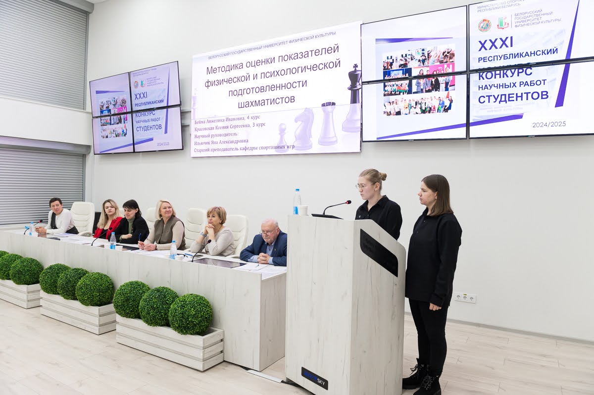 - «МЕТОДИКА ОЦЕНКИ ПОКАЗАТЕЛЕЙ ФИЗИЧЕСКОЙ И ПСИХОЛОГИЧЕСКОЙ ПОДГОТОВЛЕННОСТИ ШАХМАТИСТОВ», авторы — студентки СПФ СИиЕ Бейма Анжелика Ивановна и Красовская Ксения Сергеевна, научный руководитель — Ильючик Яна Александровна;