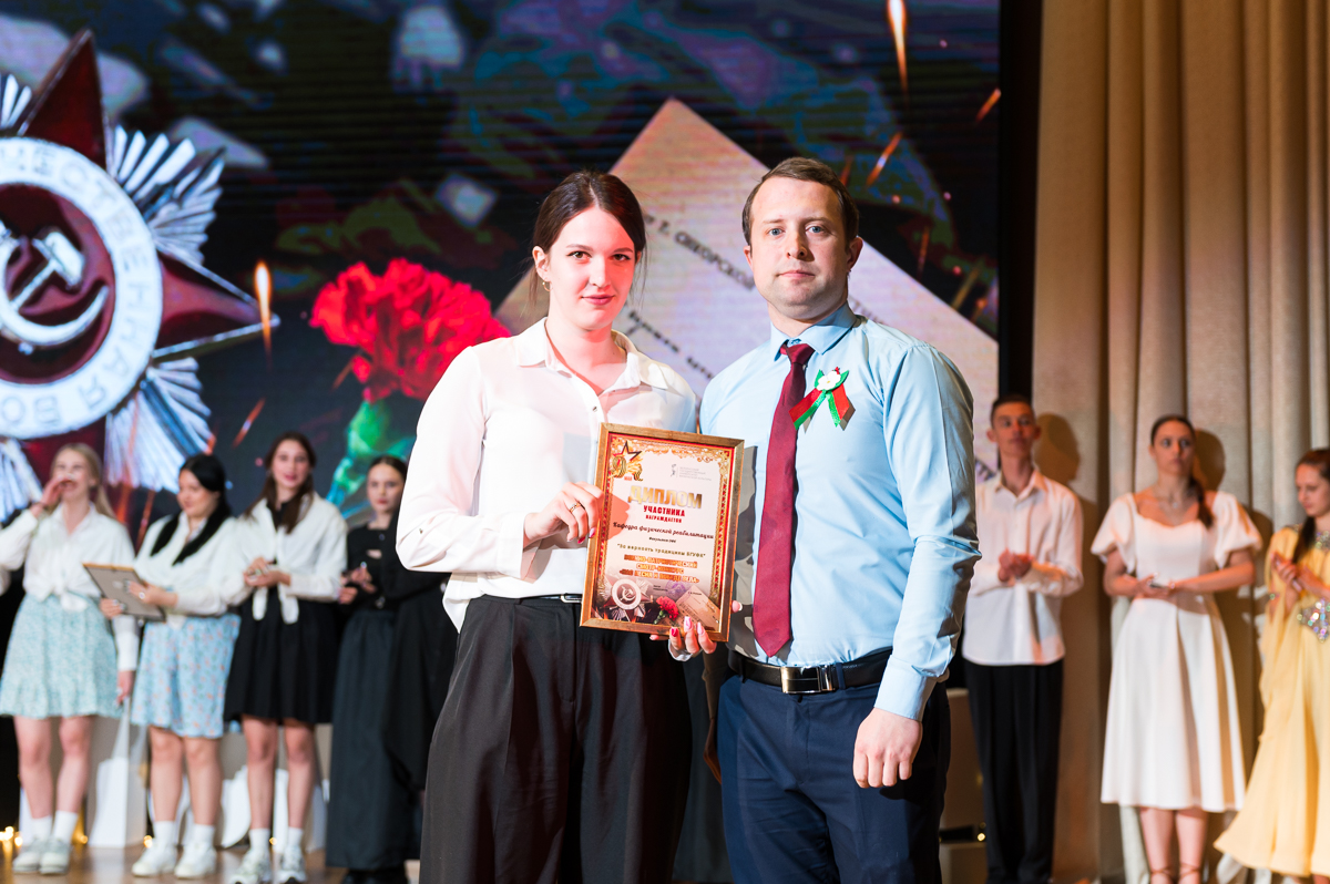 - Гран-при присуждено литературно-музыкальной композиции «Не женщины придумали войну», кафедра лечебной физической культуры и физической культуры дошкольников, факультет ОФК.