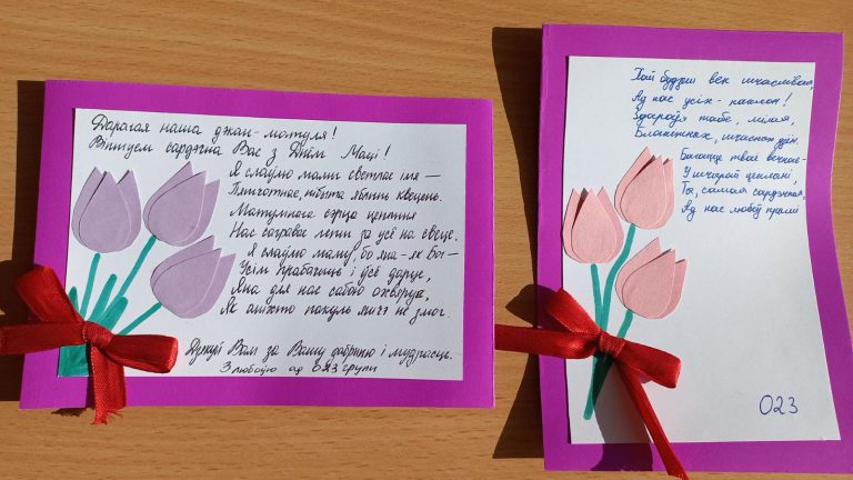 Творчыя работы студэнтаў “Віншавальны ліст любай матулі” адлюстраваны на фотаздымках.