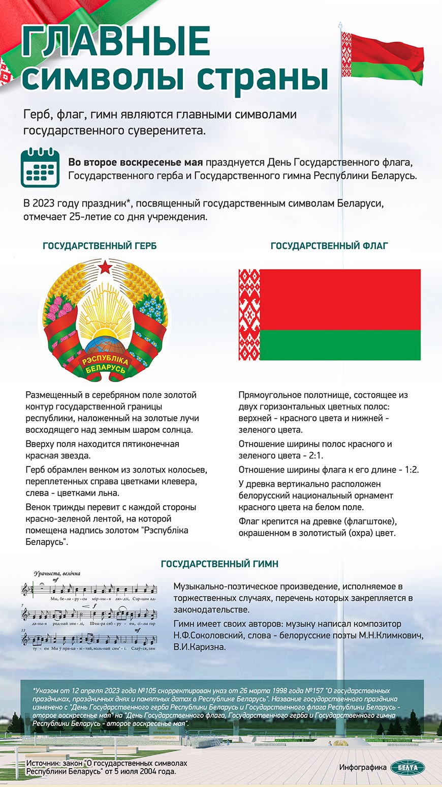 — Проведение единых дней информирования, кураторских и информационных часов, посвящённых государственной символике, Конституции Республики Беларусь и социально-экономическим достижениям страны.