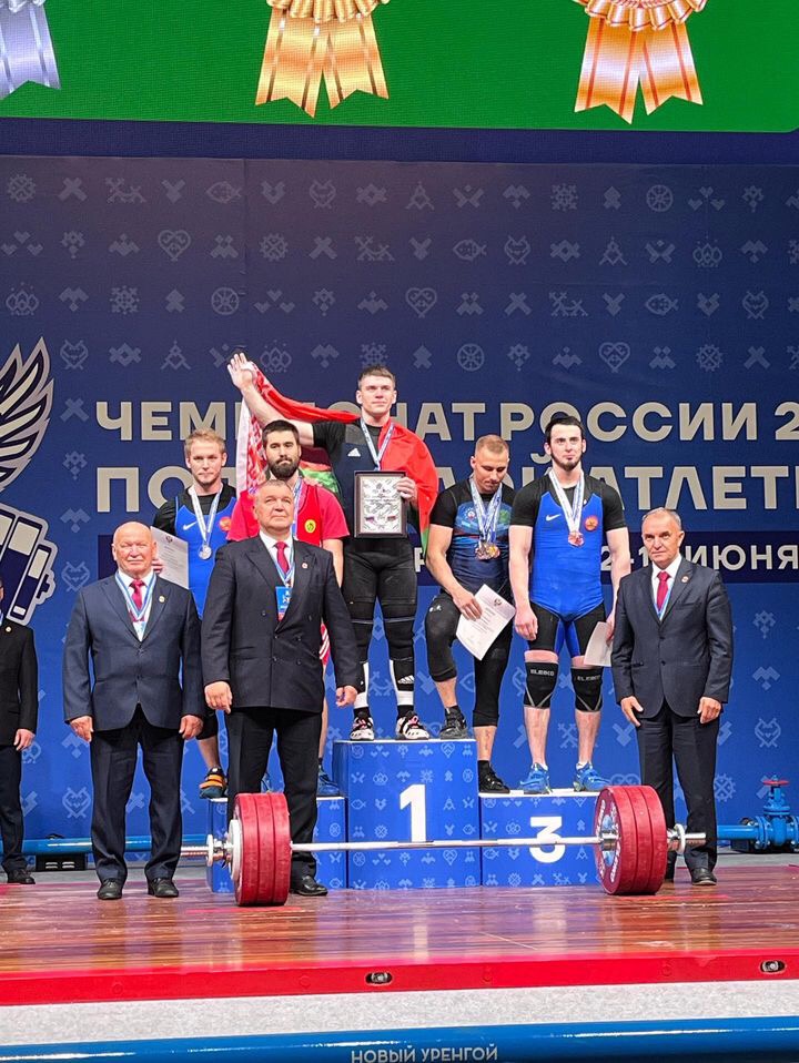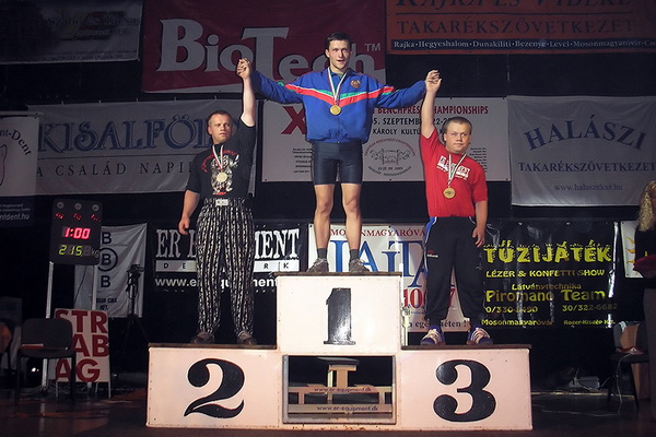 (174 кг., 203 кг., 377 кг.) в весовой категории до 102 кг в возрастной группе 19-20 лет.