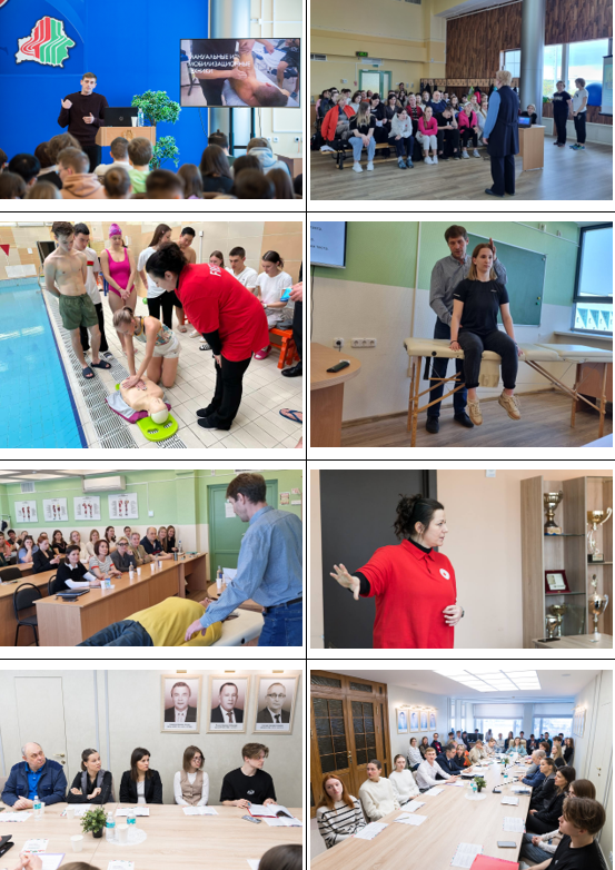 – участие в мероприятиях по правовому просвещению граждан, по борьбе с преступностью и коррупцией (информационные встречи студентов, профессорско-преподавательского состава с представителями прокуратуры, правоохранительных органов, органов здравоохранения, тематические информационные часы, посвященные особенностям избирательной системы Республики Беларусь);