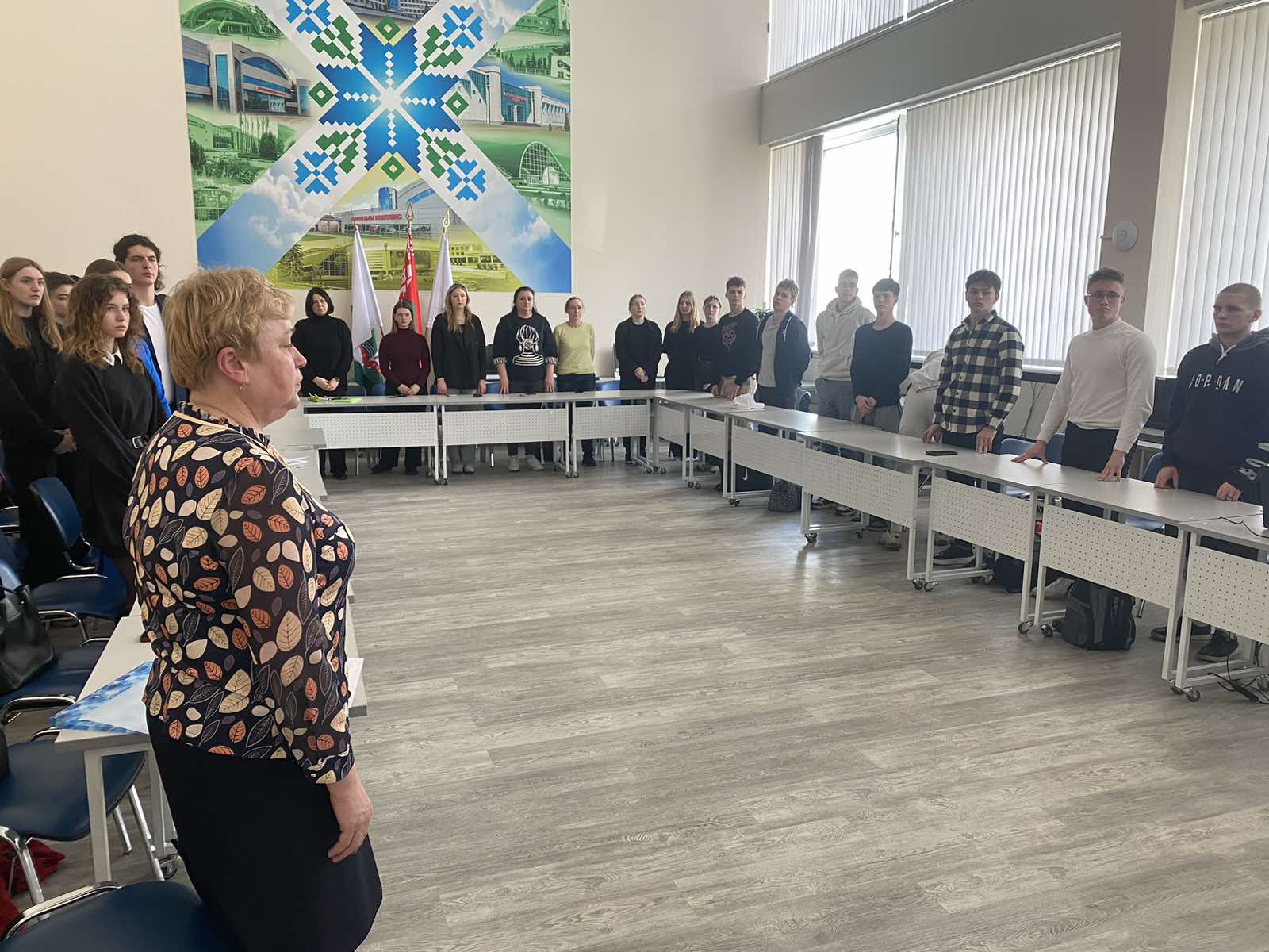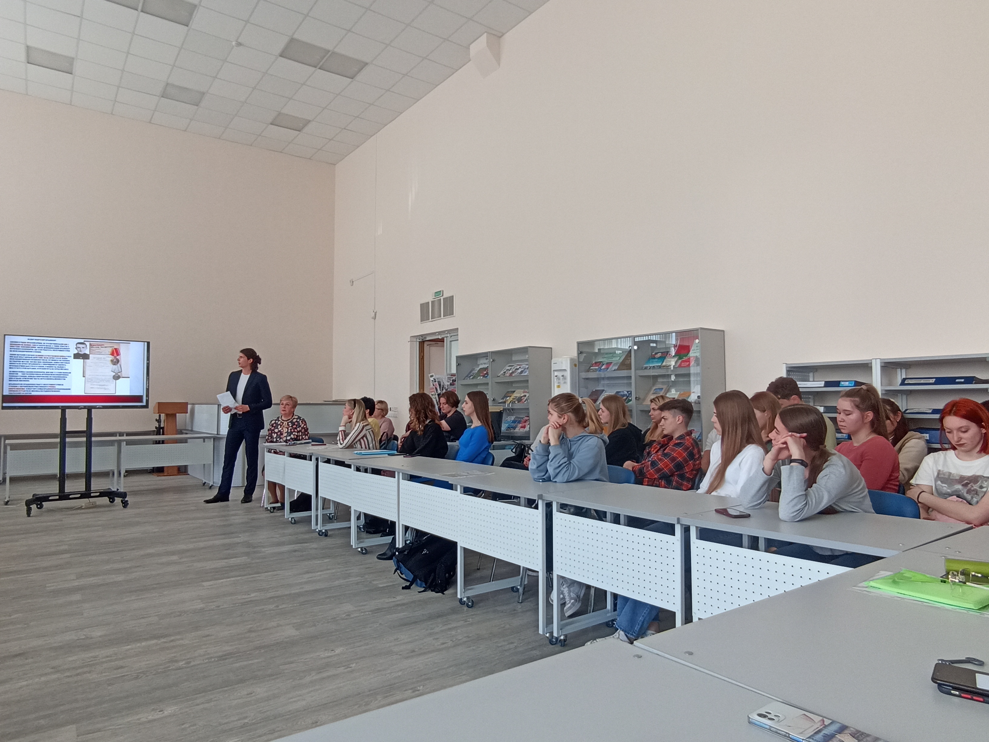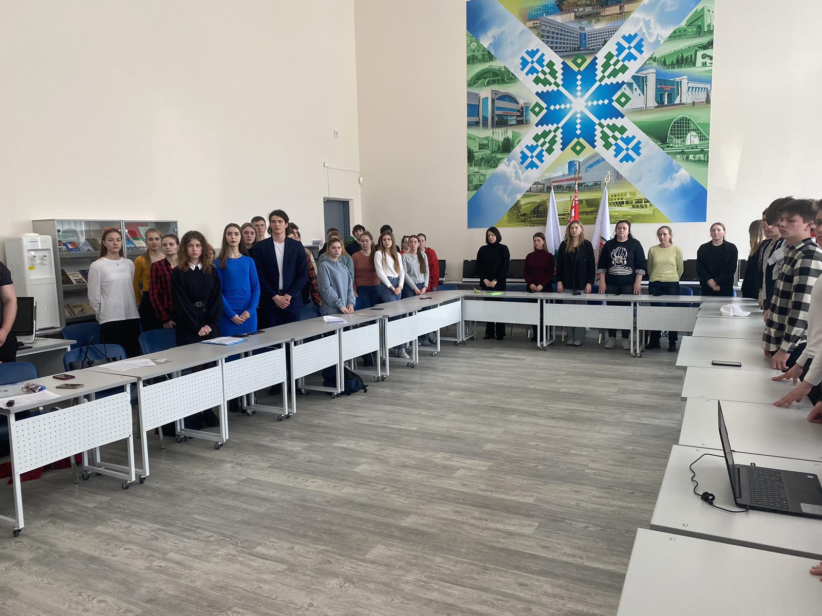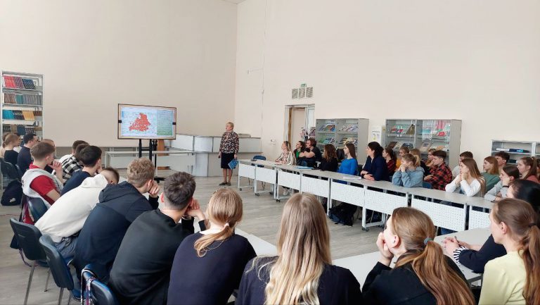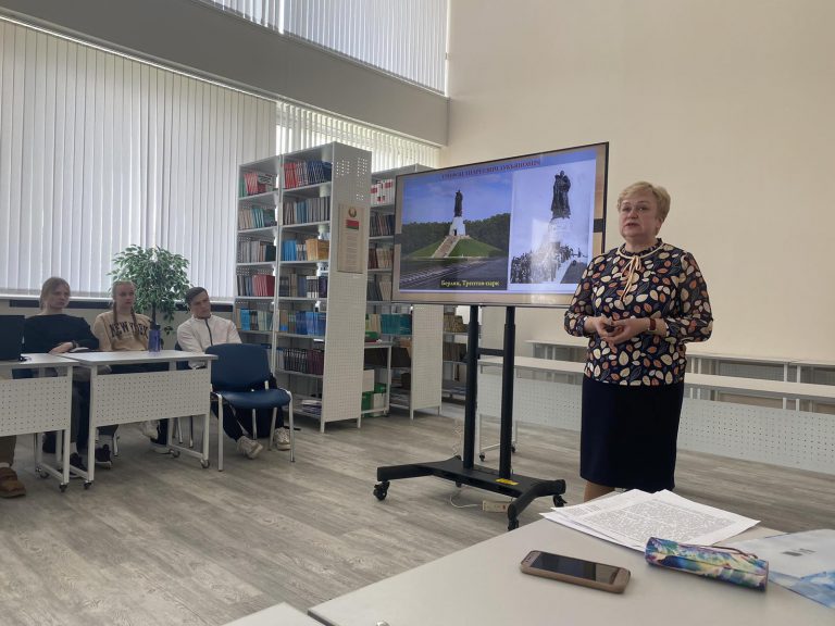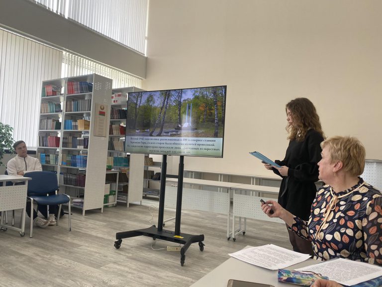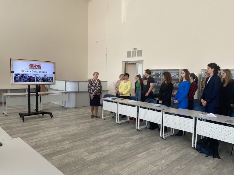 Ответственный за идеологическую и воспитательную работу на кафедре Житько Зоя Михайловна на экране продемонстрировала карту лагерей смерти функционировавших в годы немецко-фашистской оккупации на территории БССР. Далее были представлены сожжённые деревни Брестской, Витебской, Гродненской, Гомельской, Могилевской, Минской областей.