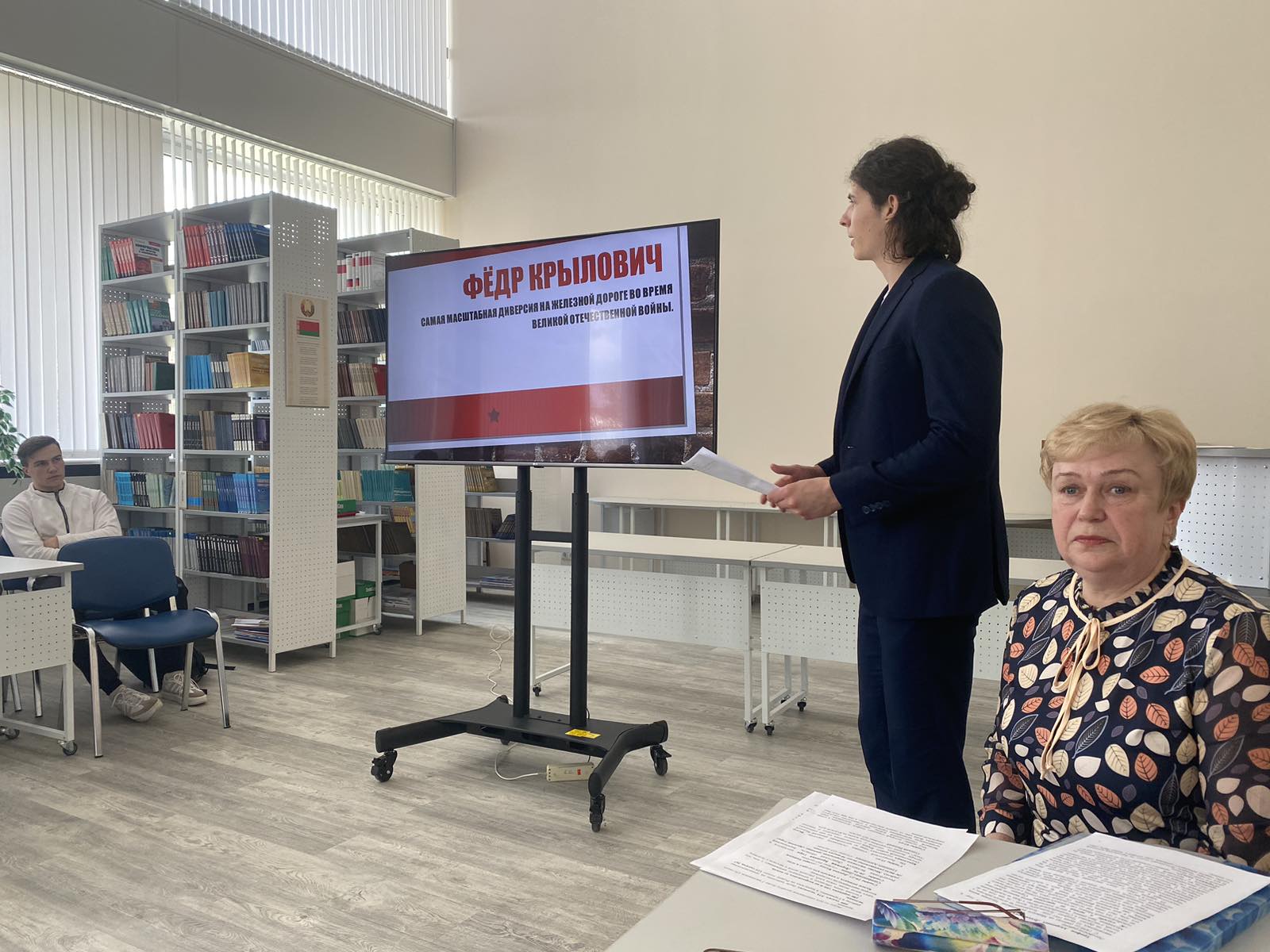 Гурский Валерий, студент 025 группы, рассказал о подвиге партизана Федора Крыловича, который совершил крупнейшую транспортную диверсию в годы Великой Отечественной войны — установил взрывное устройство и уничтожил четыре немецких эшелона с топливом, снарядами и танками «Тигр», которых гитлеровцы очень ждали на Курской дуге.