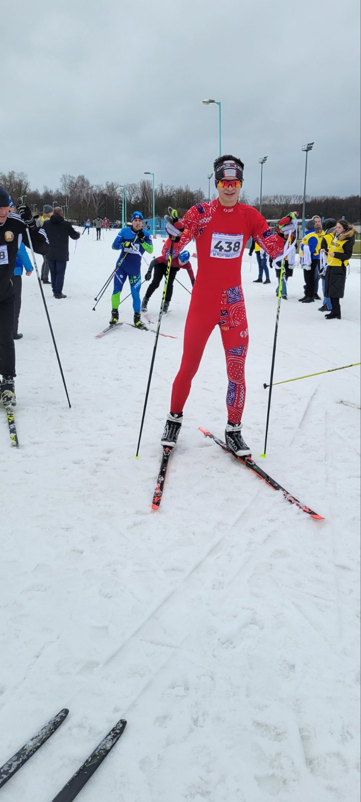 На старте студент 248 группы (кафедра лыжного и стрелкового спорта, спортивно-педагогический факультет массовых видов спорта) Кошин А.Ю.