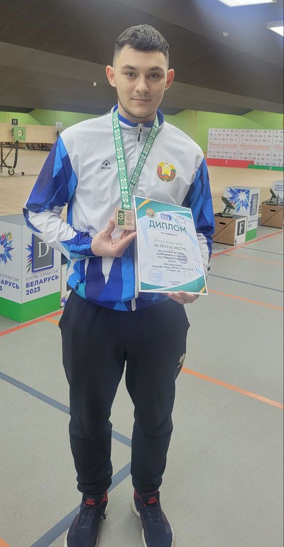 Абитуриент БГУФК Арсений Ливанцов занял третье место в стрельбе из пневматической винтовки на 10 метров. Результат спортсмена — 415,9 балла.