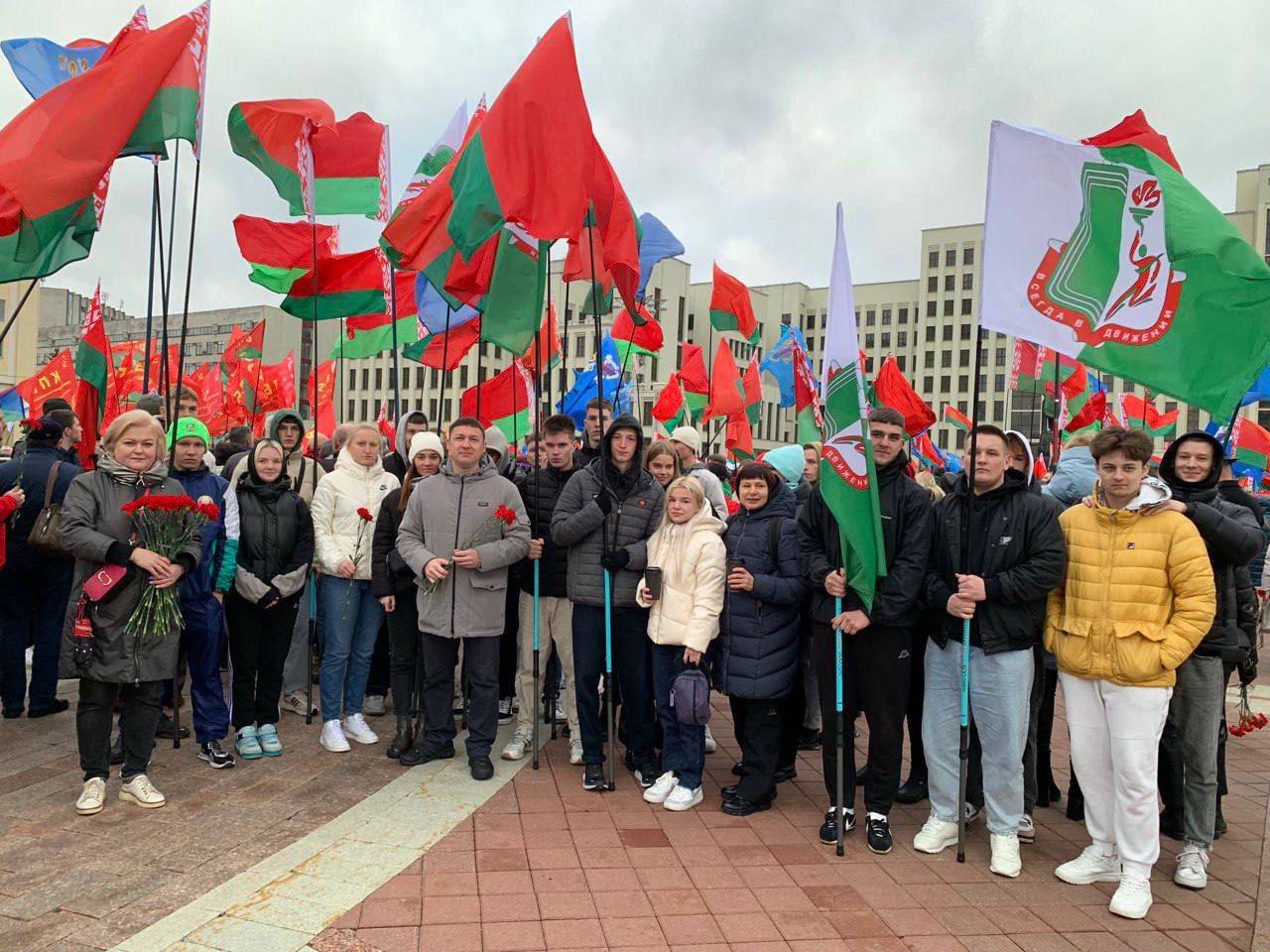 7 ноября студенты кафедры лыжного и стрелкового спорта, совместно с преподавателями и сотрудниками БГУФК во главе с первым проректором университета В.В.Клиновым приняли участие в митинге и возложении цветов к памятнику В.И.Ленина, приуроченным к 106-й годовщины Великой Октябрьской революции.