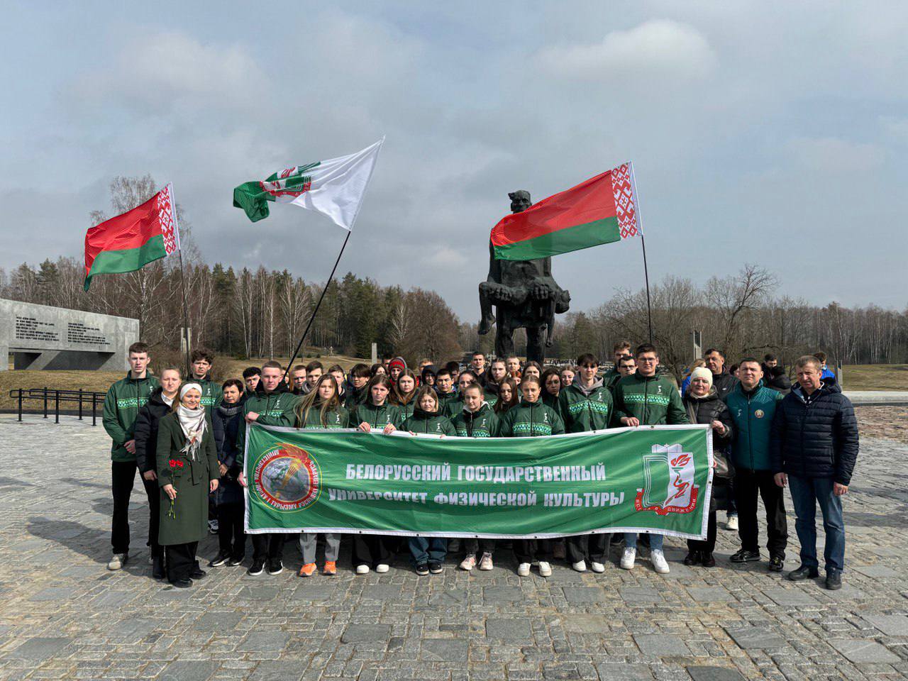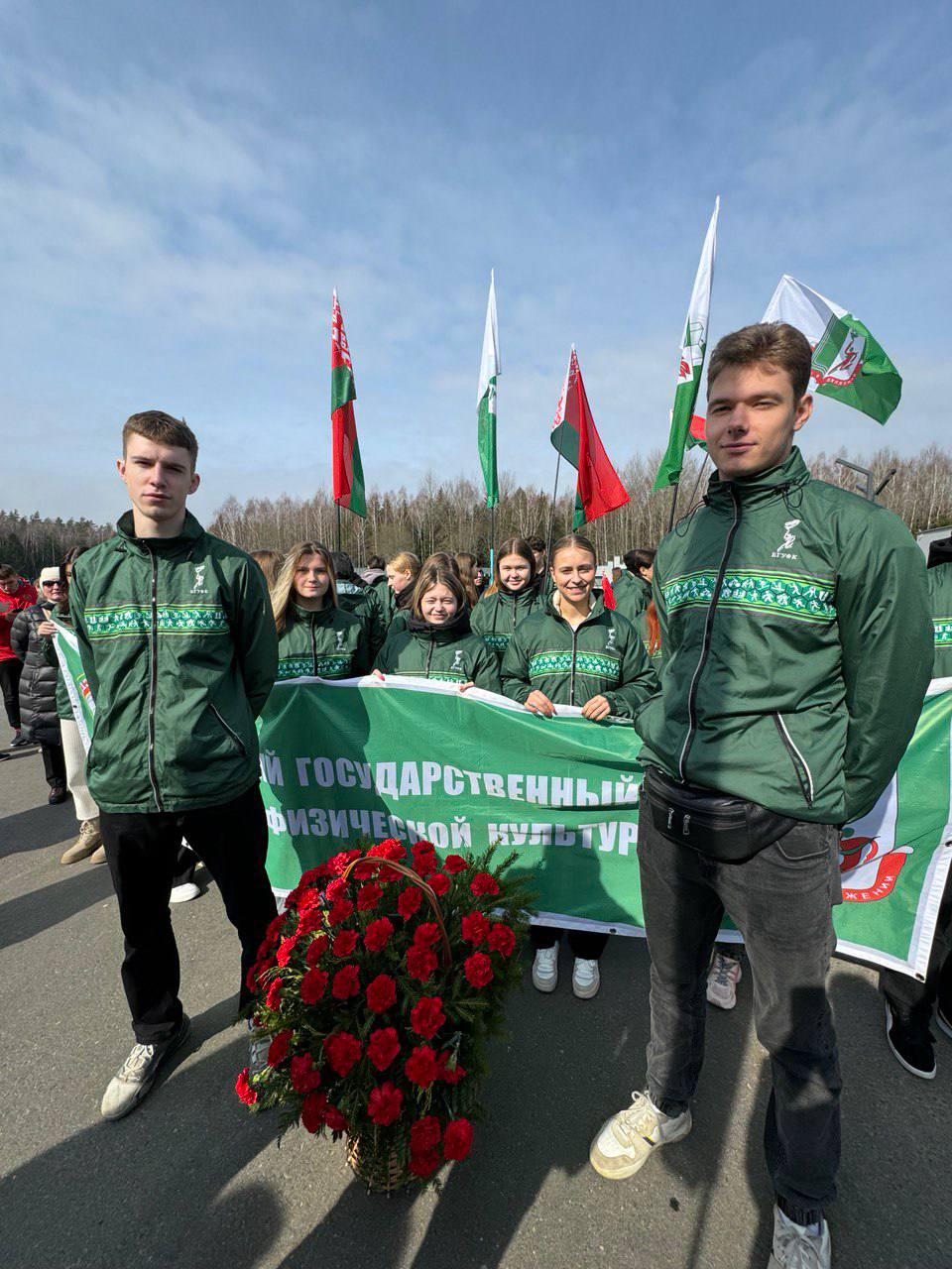 22 марта, в День памяти жертв Хатынской трагедии, студенты кафедры лыжного и стрелкового спорта совместно с заместителем декана СПФ МВС по воспитательной работе Маргаритой Александровной Подерис в составе делегации Министерства спорта и туризма Республики Беларусь во главе с Министром Сергеем Михайловичем Ковальчуком почтили память погибших белорусов и возложили цветы к Вечному огню мемориального комплекса «Хатынь».