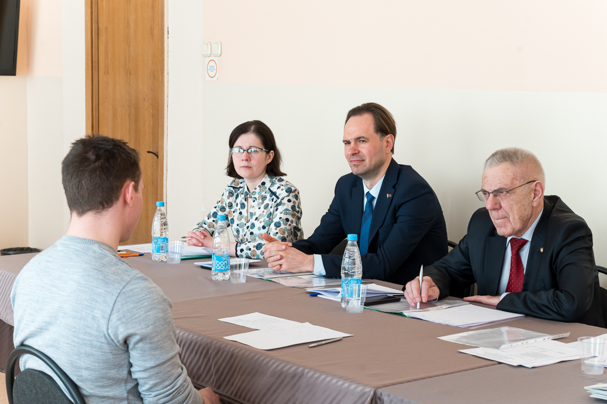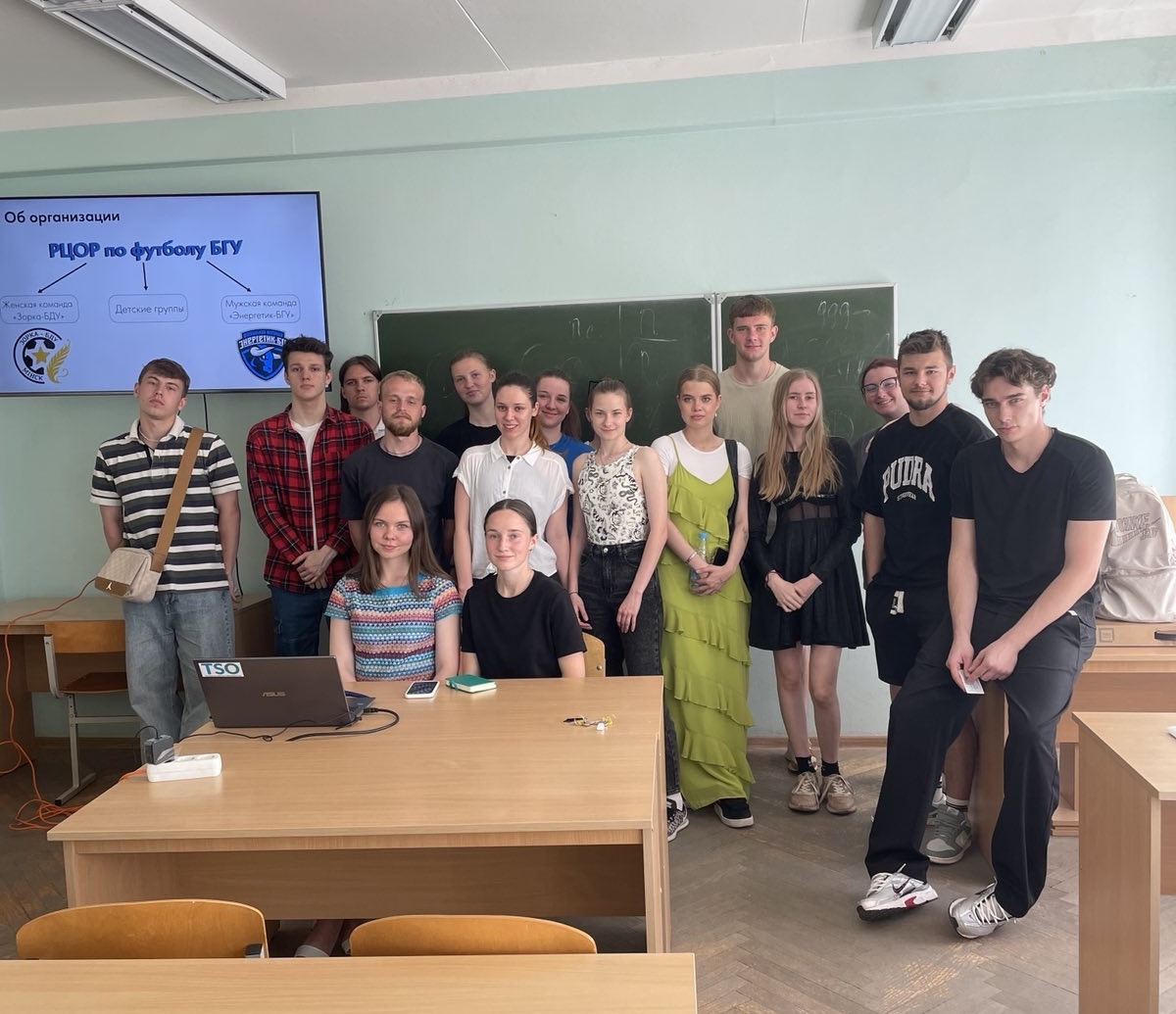 В ходе выездного занятия студенты встретились с заместителем начальника технического центра по тренерскому образованию АБФФ, выпускником программы УЕФА по футбольному менеджменту Евгением Сергеевичем Шпаковым, который поделился своим опытом участия в семинарах и конференциях УЕФА, рассказав о международных футбольных структурах – FIFA, UEFA и континентальных конфедерациях – и особенностях сотрудничества АБФФ с этими организациями.