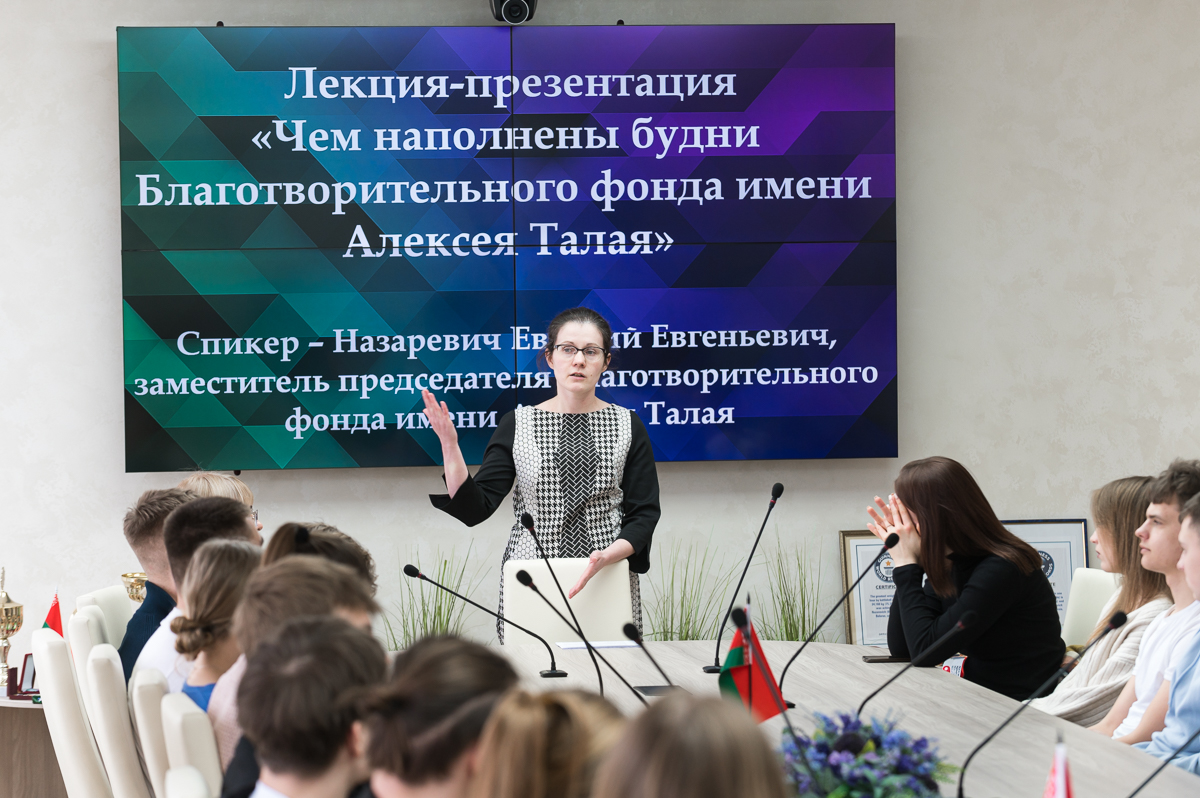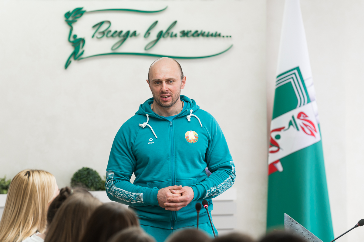 18 марта 2024 года на кафедре менеджмента спорта состоялась лекция на тему «Чем наполнены будни Благотворительного Фонда имени Алексея Талая». Спикером выступил мастер спорта международного класса, многократный чемпион и призёр Республики Беларусь, Европы и мира, Кубков и фестивалей по гиревому спорту, 21-кратный рекордсмен «Мировых рекордов Гиннесса» в гиревом марафоне – Назаревич Евгений Евгеньевич. В рамках лекции Евгений Евгеньевич рассказал о своем жизненном пути, насыщенном событиями и достижениями, о чести представлять свою Родину на международной арене, а также о миссии и деятельности Благотворительного Фонда имени Алексея Талая.