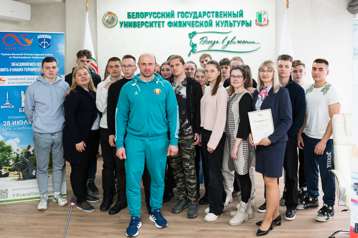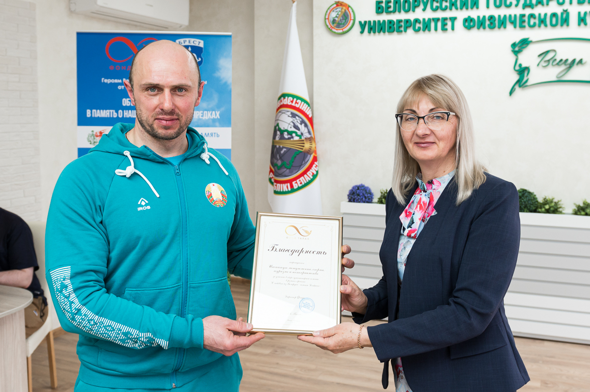 Евгений Евгеньевич также поделился со студентами и слушателями воспоминаниями о гуманитарных поездках в Луганскую Народную Республику и Донецкую Народную Республику.По окончании лекции Евгений Евгеньевич Назаревич в торжественной обстановке вручил Благодарность Благотворительного Фонда имени Алексея Талая Институту менеджмента спорта и туризма БГУФК за участие в сборе гуманитарной помощи в рамках проекта «С любовью из Беларуси – семьям Донбасса».