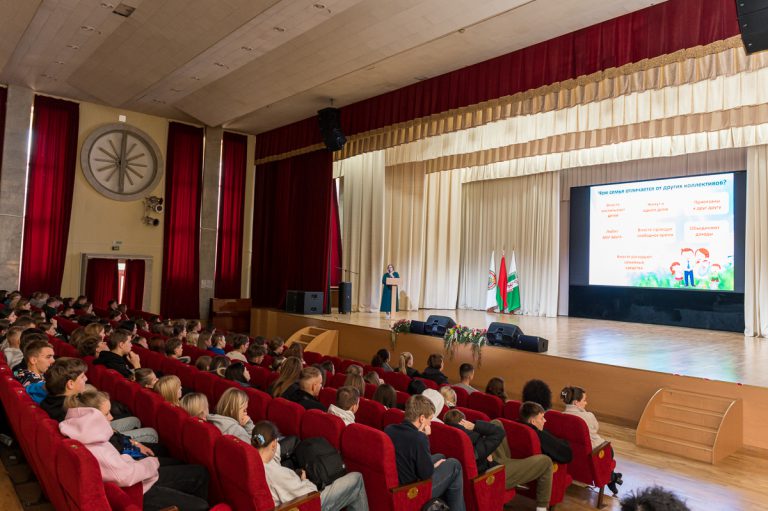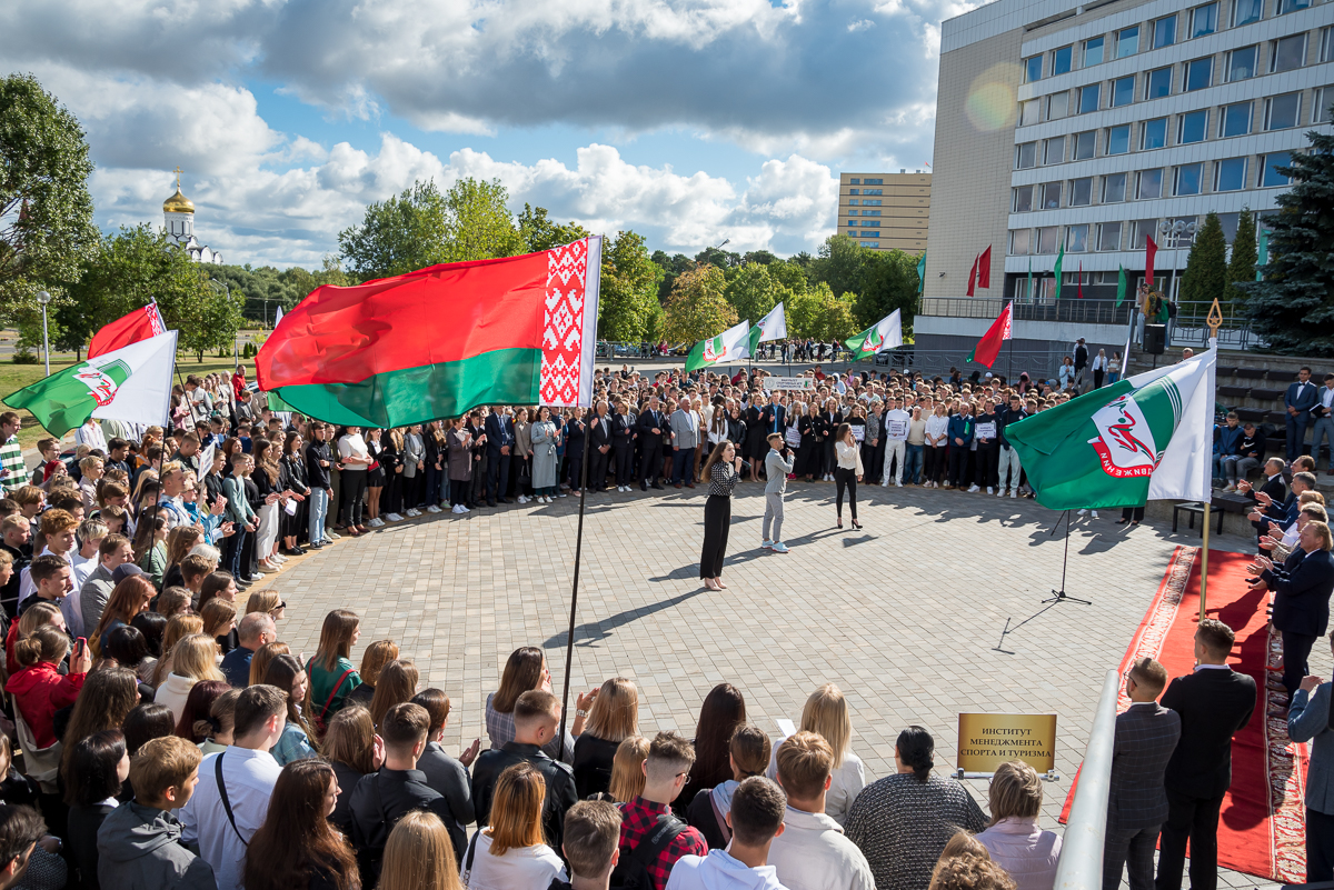 1 сентября в торжественной обстановке студенты первого курса приняли участие в мероприятии, посвященному Дню знаний. После окончания торжественной части присутствующие на мероприятии отправились на открытый уроке “Историческая память – дорога в будущее” с участием Президента Республики Беларусь А.Г.Лукашенко.