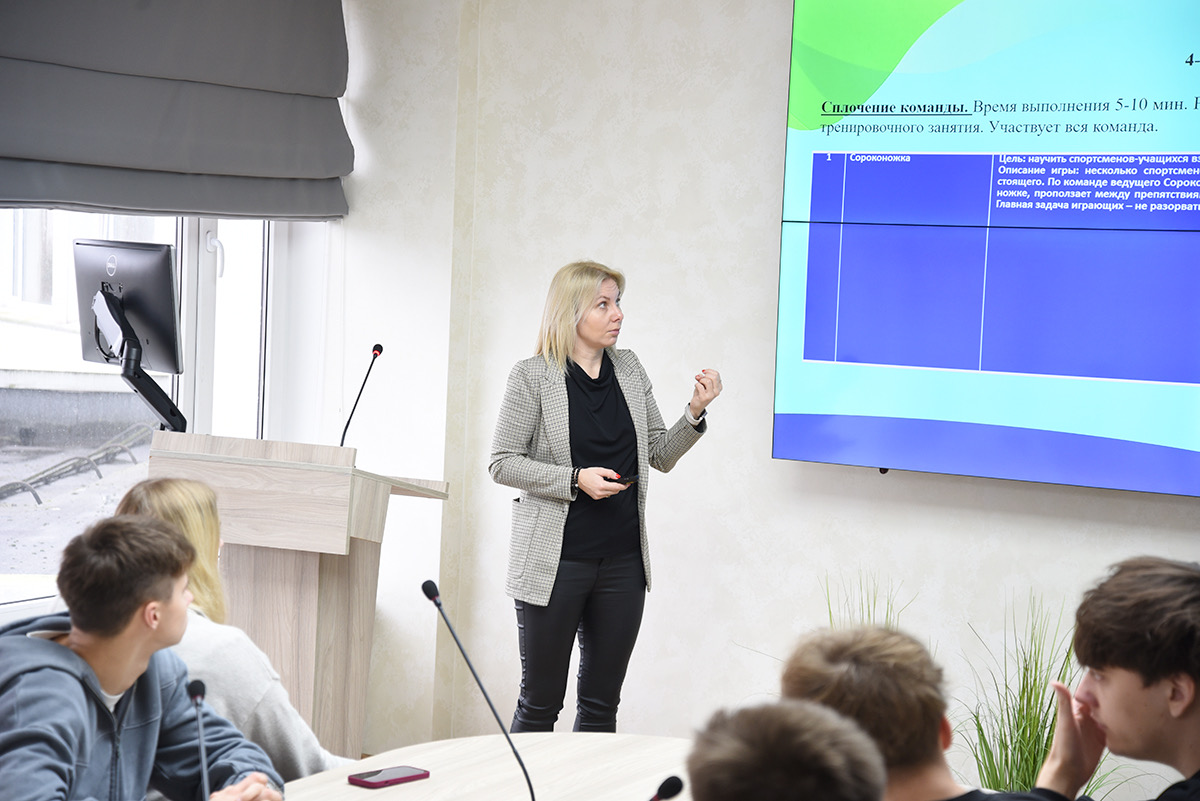 По теме «Организация системы психологического сопровождения спортсменов» занятие провел заведующий кафедрой, кандидат педагогических наук Сивицкий Владимир Геннадьевич.