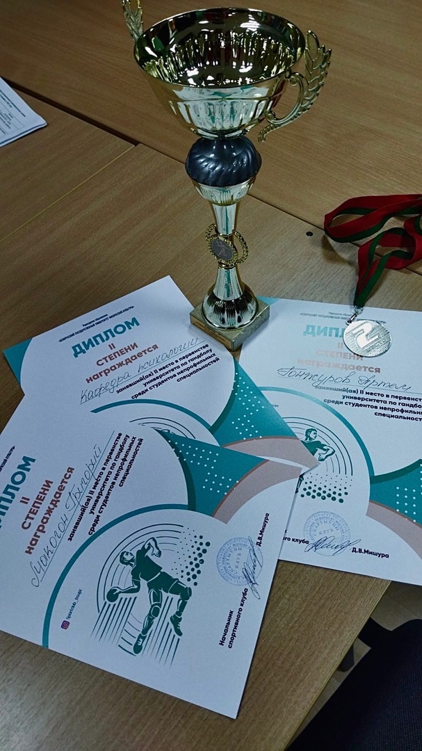 На базе плавательного комплекса БГУФК 15 ноября 2022 года состоялось первенство университета по плаванию среди студентов непрофильных специальностей. Наши студенты успешно выступили на соревновании: Григорий Макагон занял 1-е место, а Алина Путятина — 3-е. У кафедры — 2-е место в общем зачете. Поздравляем!