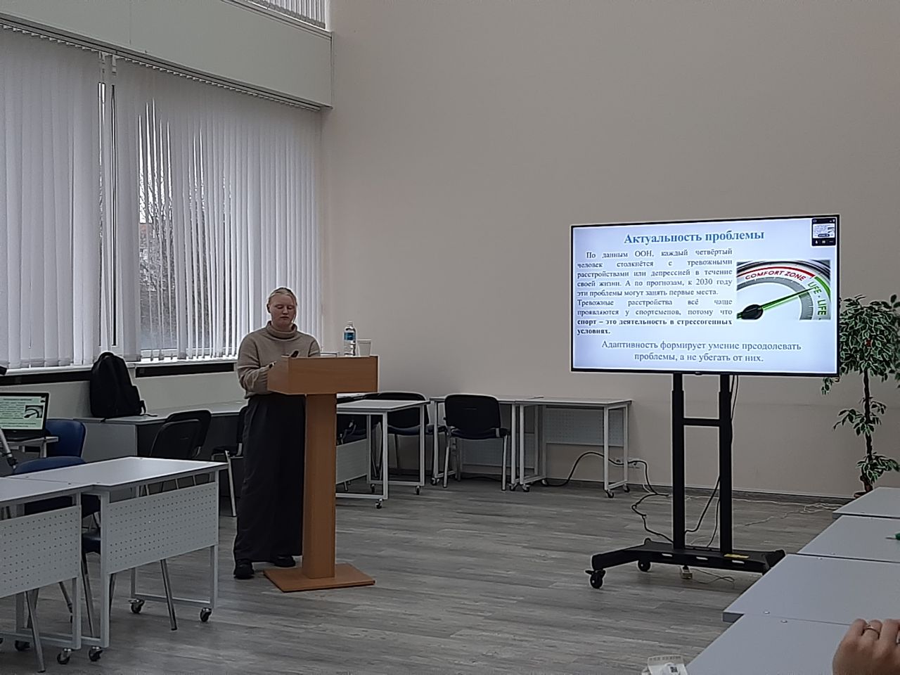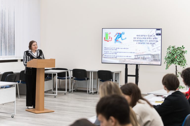 В БГУФК состоялся мастер-класс на тему «Программа психологической подготовки в детско-юношеском спорте». Мероприятие провела старший преподаватель кафедры психологии Иванова Ольга Валерьевна. Мастер-класс был посвящен крайне актуальной, но часто упускаемой из виду теме – формированию психической устойчивости у юных спортсменов. В ходе интерактивного занятия участники не просто узнали теорию, а на практике познакомились с комплексом методов саморегуляции, которые могут быть легко интегрированы в тренировочный процесс.