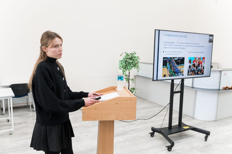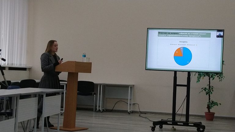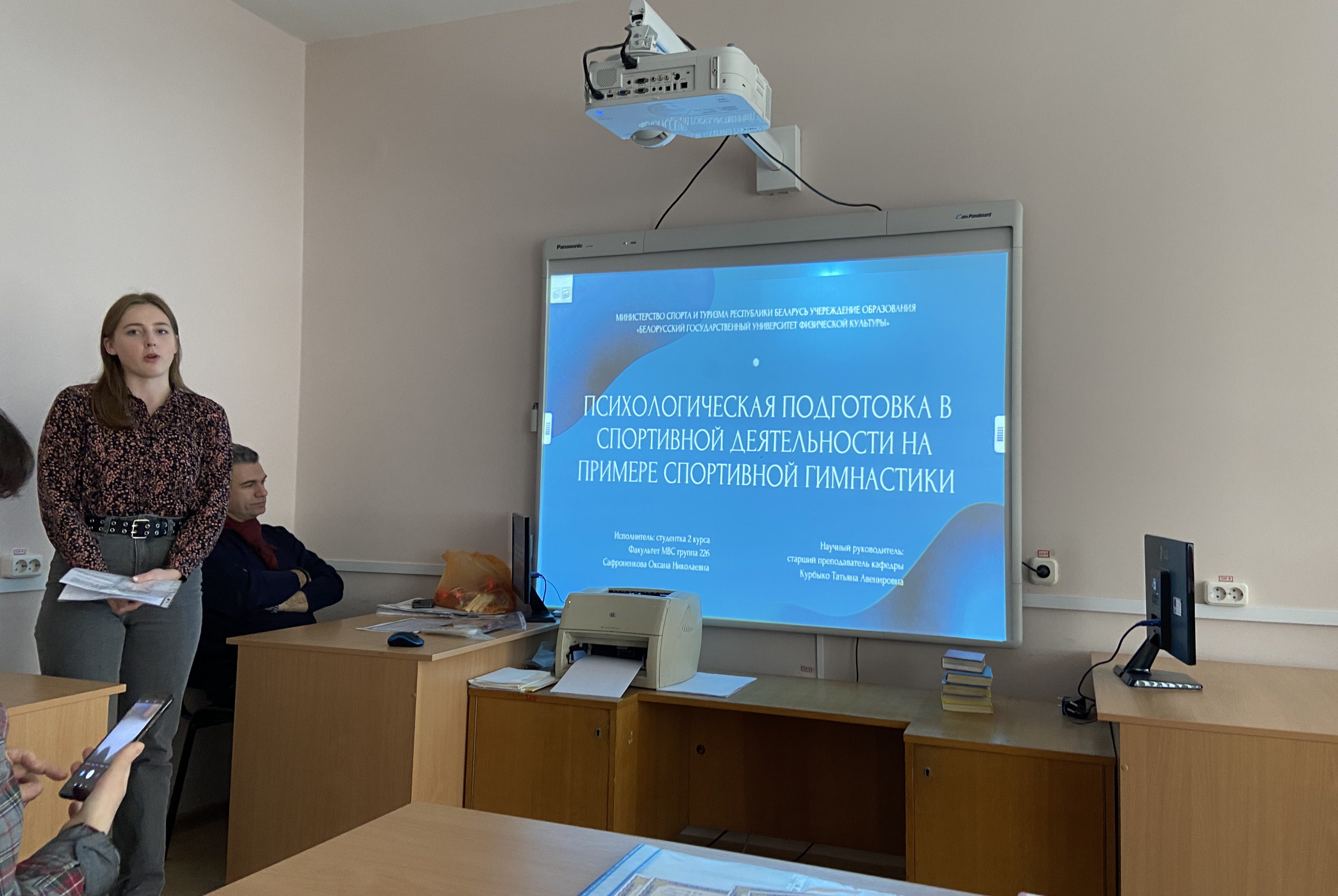 - «Психологическая подготовка в спортивной деятельности на примере спортивной гимнастики» — О. Сафроненкова, группа 226 (научный руководитель — Т.А. Курбыко, старший преподаватель кафедры иностранных языков).