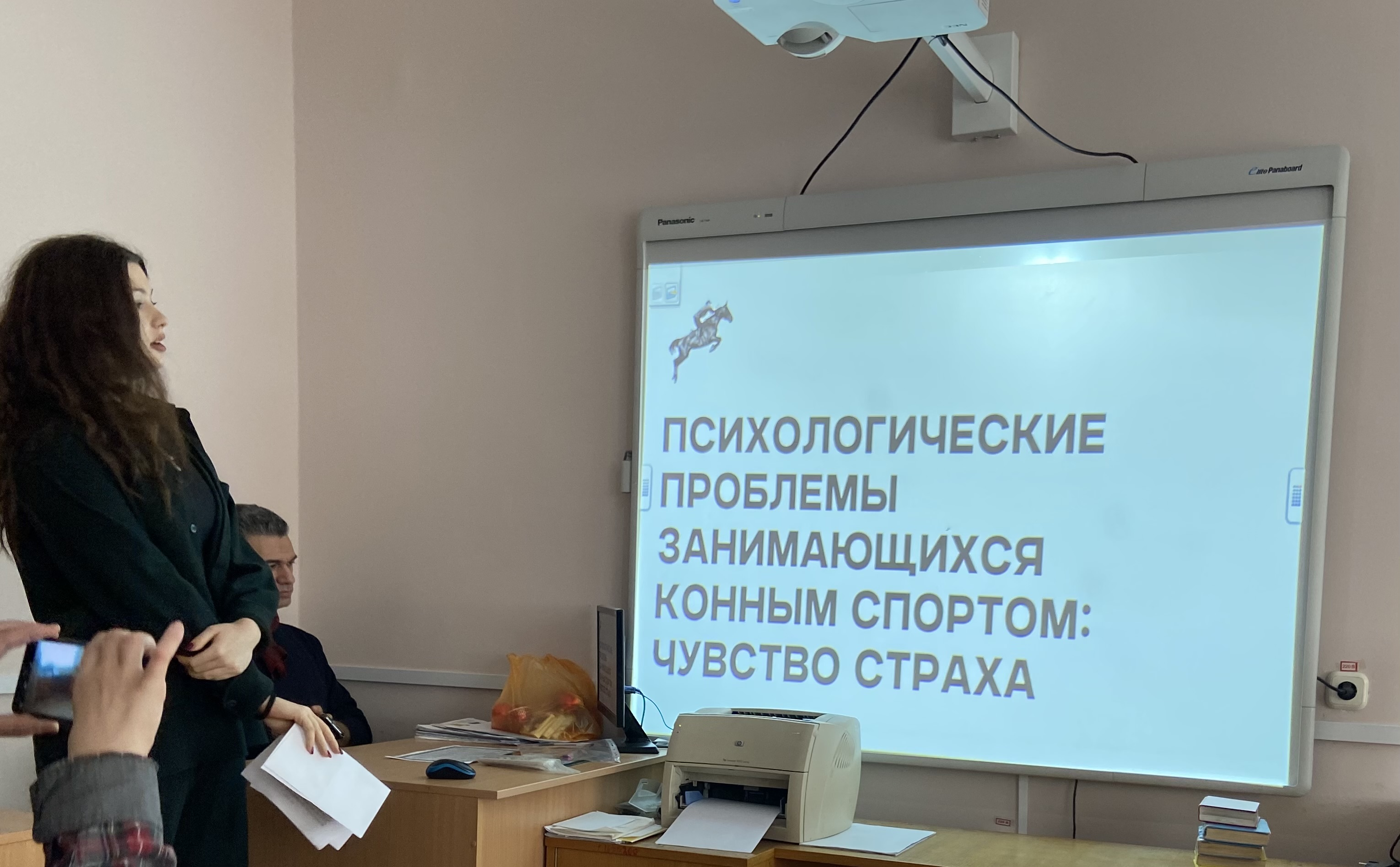 - «Психологические проблемы занимающихся конным спортом: чувство страха» — Е. Кульбицкая, группа 226 (научный руководитель — С.Р. Сенько, старший преподаватель кафедры иностранных языков).