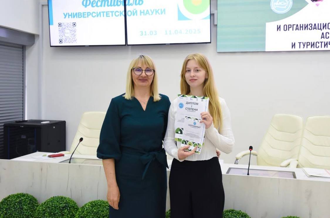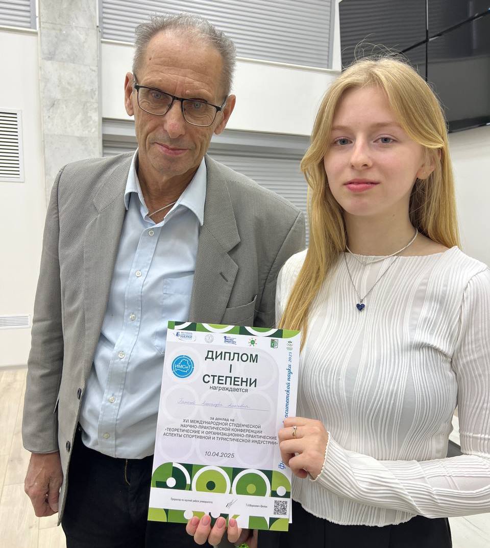 Диплом 1-ой степени получили Сырыцкая Ксения и Марченко Мария (412 группа). Тема «Рекреационные технологии в туризме». Научный руководитель – Гататуллин А.Г. заведующий кафедрой спортивного туризма и технологий в туристической индустрии, кандидат исторических наук, доцент.