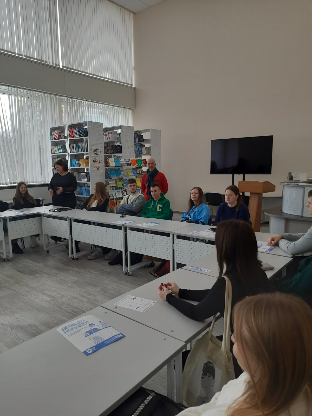 7 февраля 2023 г. студенты 1 курса (гр. 411, 412) Института менеджмента спорта и туризма посетили научную библиотеку университета. Работники библиотеки провели ознакомительную экскурсию для первокурсников и познакомили со структурой библиотеки, пунктах обслуживания пользователей, имеющимися услугами и электронными информационными ресурсами библиотеки.