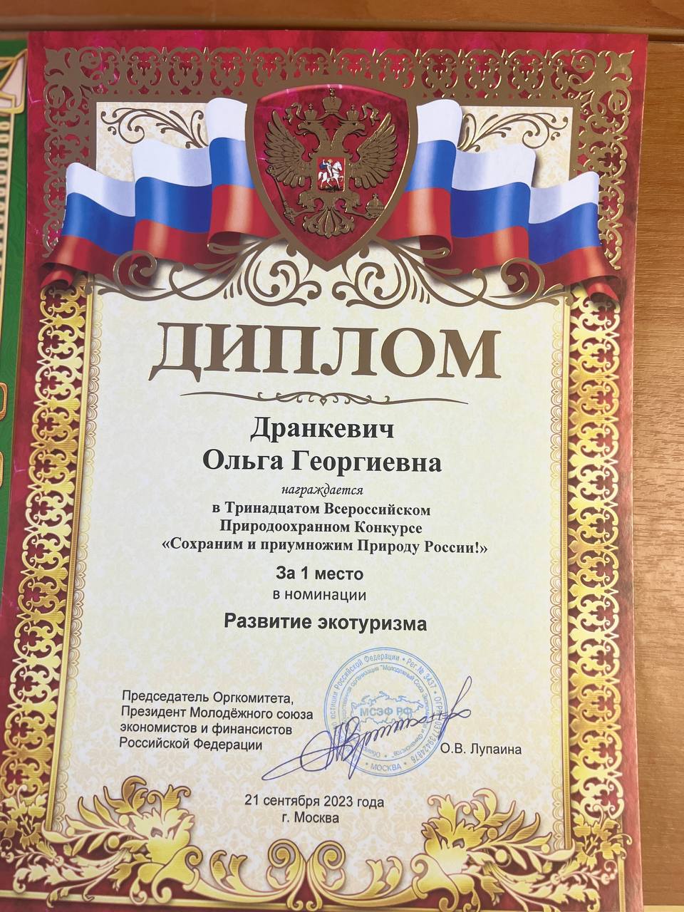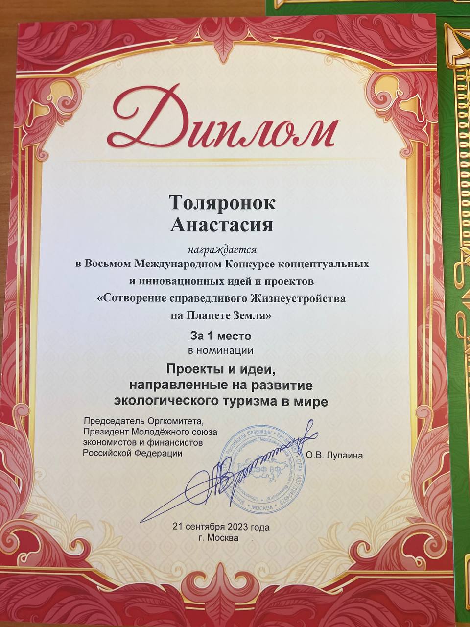 ✅в номинации 69 «Проекты и идеи, направленные на развитие экологического туризма в мире» стала магистрант Толяронок Анастасия Юрьевна с проектом «Разработка программы экологического тура с использованием национальных традиций»;