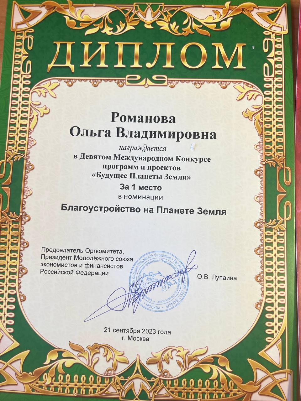 ✅в номинации 10 «Благоустройство на Планете Земля» — старший преподаватель кафедры СТиТвТИ Романова Ольга Владимировна с проектом «Разработка программы спортивного фестиваля как эффективной формы событийного туризма и благоустройства Родины»;