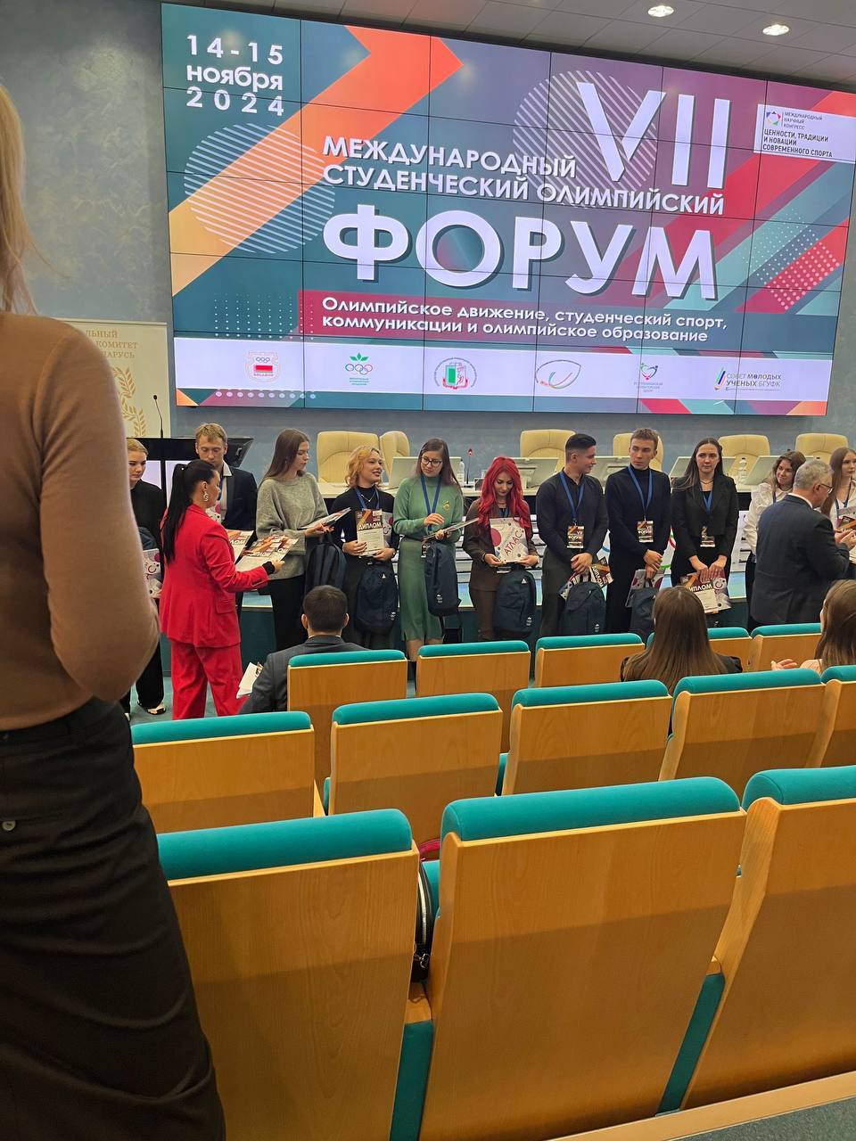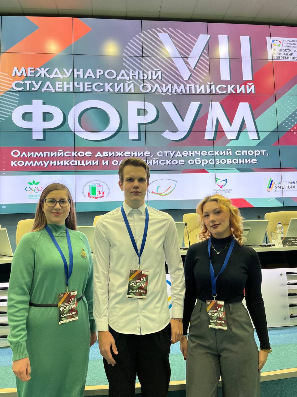 14 ноября 2024 г. на VII МЕЖДУНАРОДНОМ СТУДЕНЧЕСКОМ ОЛИМПИЙСКОМ ФОРУМЕ «ОЛИМПИЙСКОЕ ДВИЖЕНИЕ, СТУДЕНЧЕСКИЙ СПОРТ, КОММУНИКАЦИИ И ОЛИМПИЙСКОЕ ОБРАЗОВАНИЕ» студенты под руководством ППС кафедры представили два проекта: