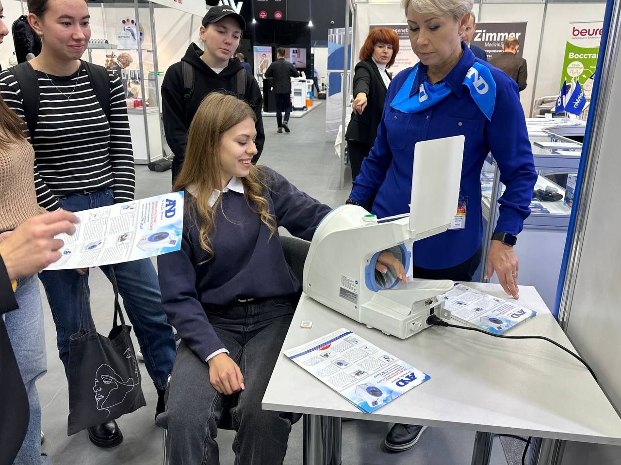 Студенты группы 0305 кафедры лечебной физической культуры и физической культуры дошкольников факультета оздоровительной физической культуры в рамках информационного часа посетили выставочную экспозицию и испытали некоторые образцы медицинской техники.