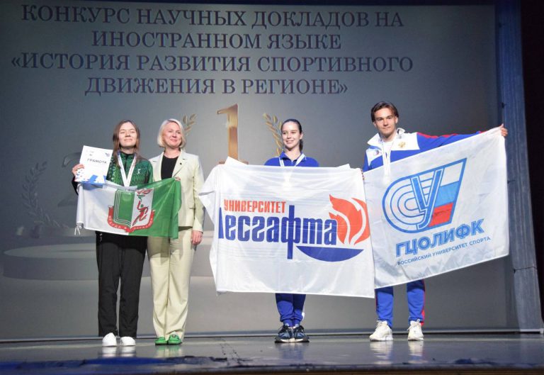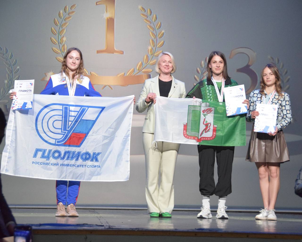 Два первых места в конкурсе научных докладов «Перспективы и пути развития физической культуры и спорта»: одна медаль у магистрантов, вторая — у аспирантов.