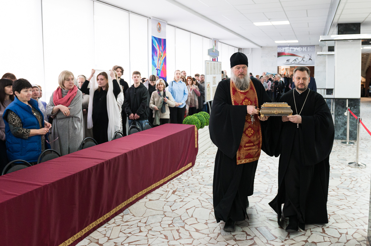 16 февраля ковчег с частицей Пояса Пресвятой Богородицы и частицами мощей праведных Иоакима и Анны был принесен в стены БГУФК. Руководство, профессорско-преподавательский состав, студенты университета смогли приложиться к великой святыне христианского мира, испросив у Божией Матери помощи и заступления.