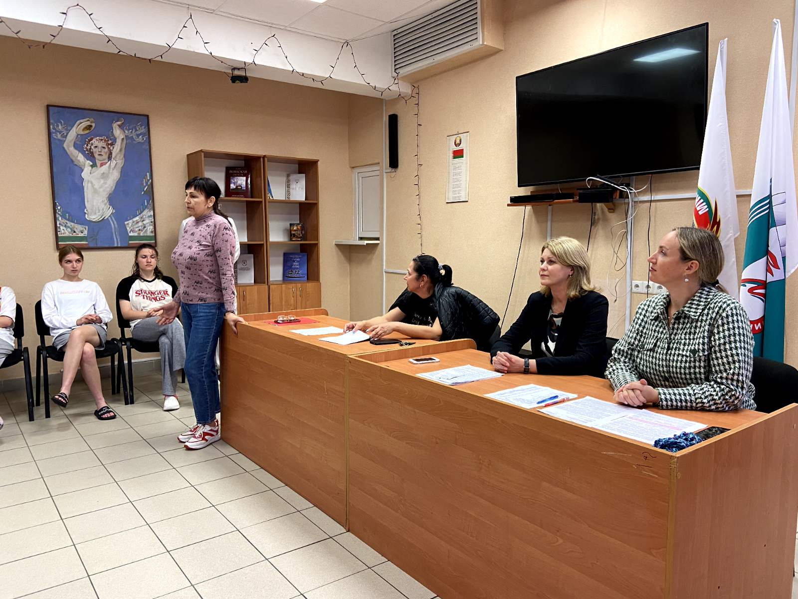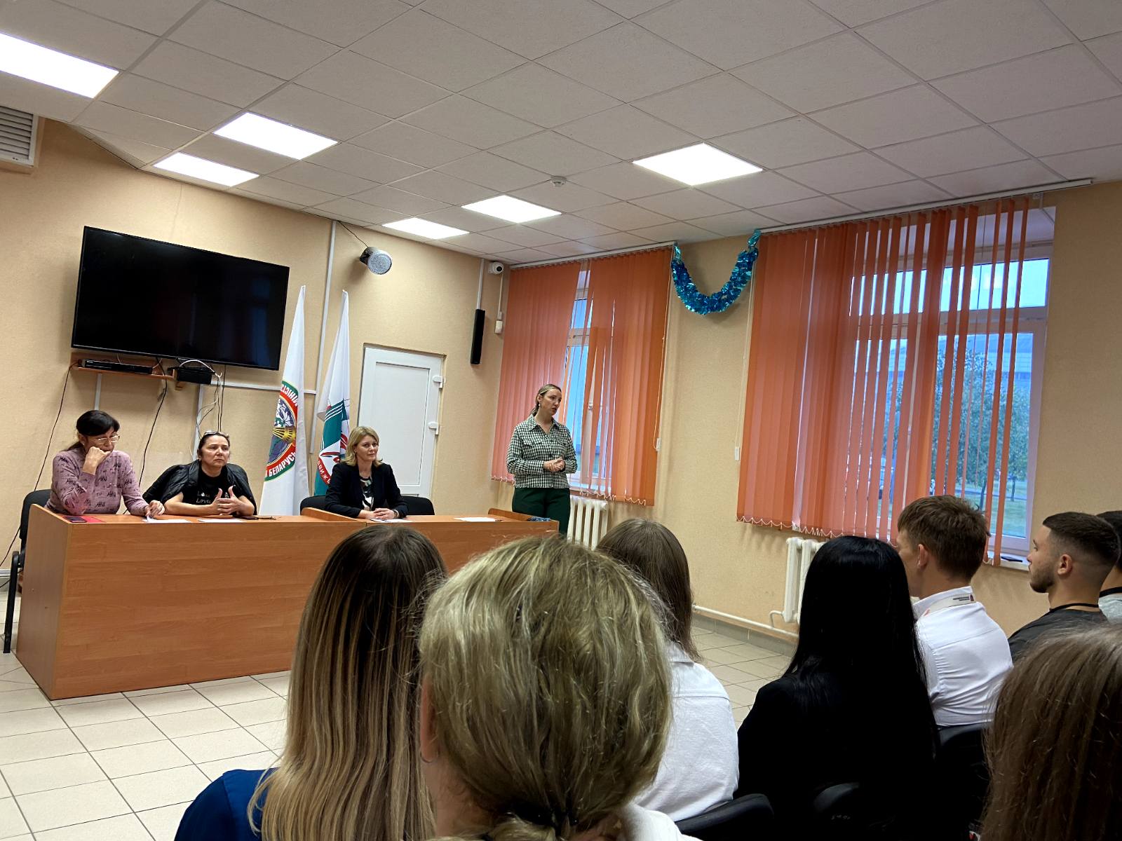 В продолжении обсуждения вопроса правовой культуры Ольга Владимировна Шарейко ознакомила студентов с требованиями внутренних руководящих документов университета. Педагог-организатор Егор Андреевич Радкевич рассказал о работе территориальной добровольной дружины и о традиционно организуемых в общежитии университета досуговых мероприятиях.