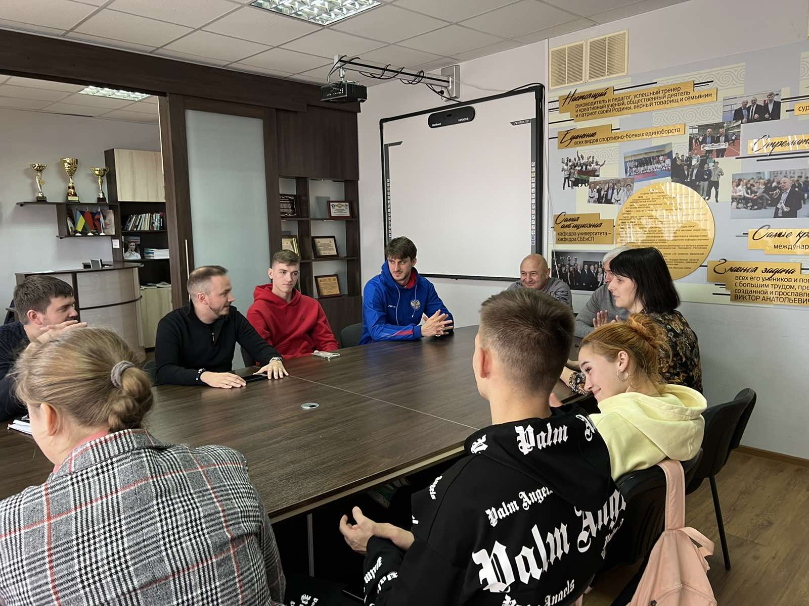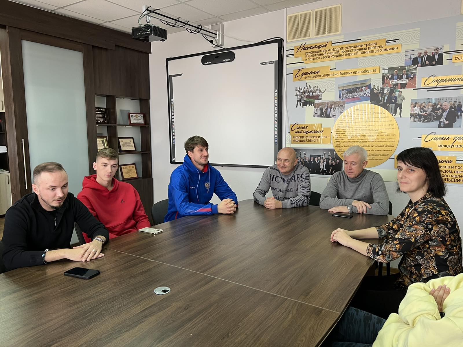 На кафедре спортивно-боевых единоборств и спецподготовки 19 октября 2022 года состоялось знаменательное событие – круглый стол с участием олимпийских чемпионов из России по таэквондо Храмцовым Максимом и Лариным Владиславом, а также с главным тренером сборной России по таэквондо Ивановым Вадимом Александровичем, кандидатом педагогических наук, заслуженным тренером России.