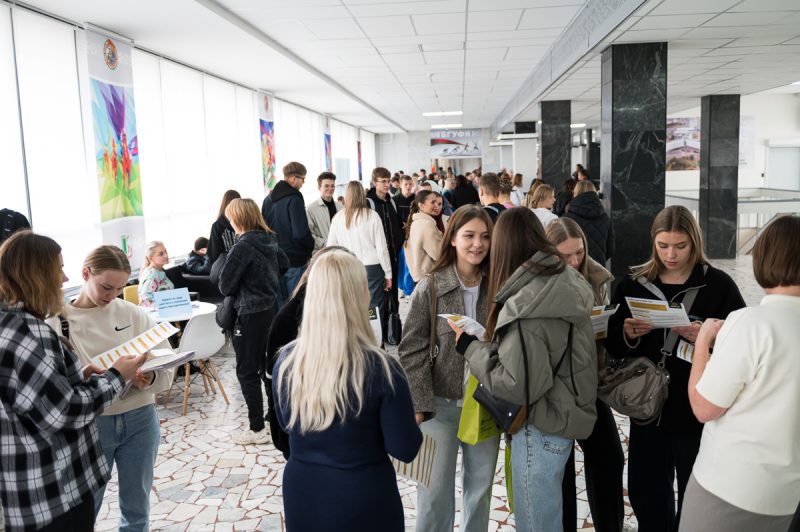 10 октября в Белорусском государственном университете физической культуры прошла мини-ярмарка вакансий для студентов. В 11.30, когда был дан старт мероприятию, фойе мраморного зала моментально заполнили соискатели актуальных вакансий.